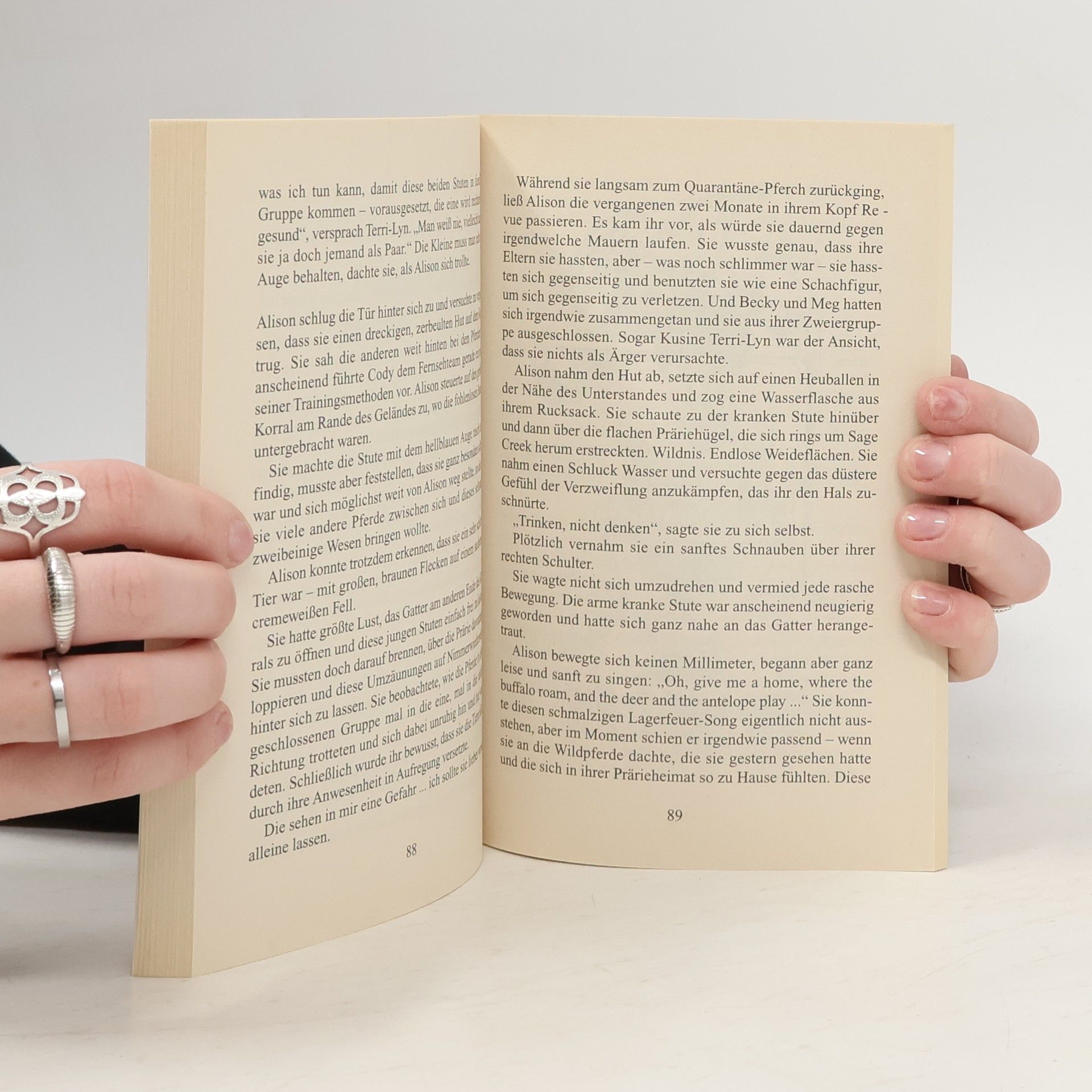 Alison ist verzweifelt, als ihre Eltern ihr geliebtes Pferd Dutchess gegen ihren Willen verkaufen. Kurzentschlossen fliegt sie mit ihrer Kusine Becky nach Wyoming zu ihrer Tante. Alison hat sich geschworen, nach dem Verlust ihres geliebten Pferdes nie mehr zu reiten – und das im Pferdeparadies Wyoming, wo es auf den Prärien noch echte Wildpferde gibt! Als ihr auf einer Wildpferde-Auktion eine kranke Mustangstute auffällt, lässt sie sich dennoch auf ein waghalsiges Spiel ein, um den Pferd zu helfen – und gerät in Schwierigkeiten …