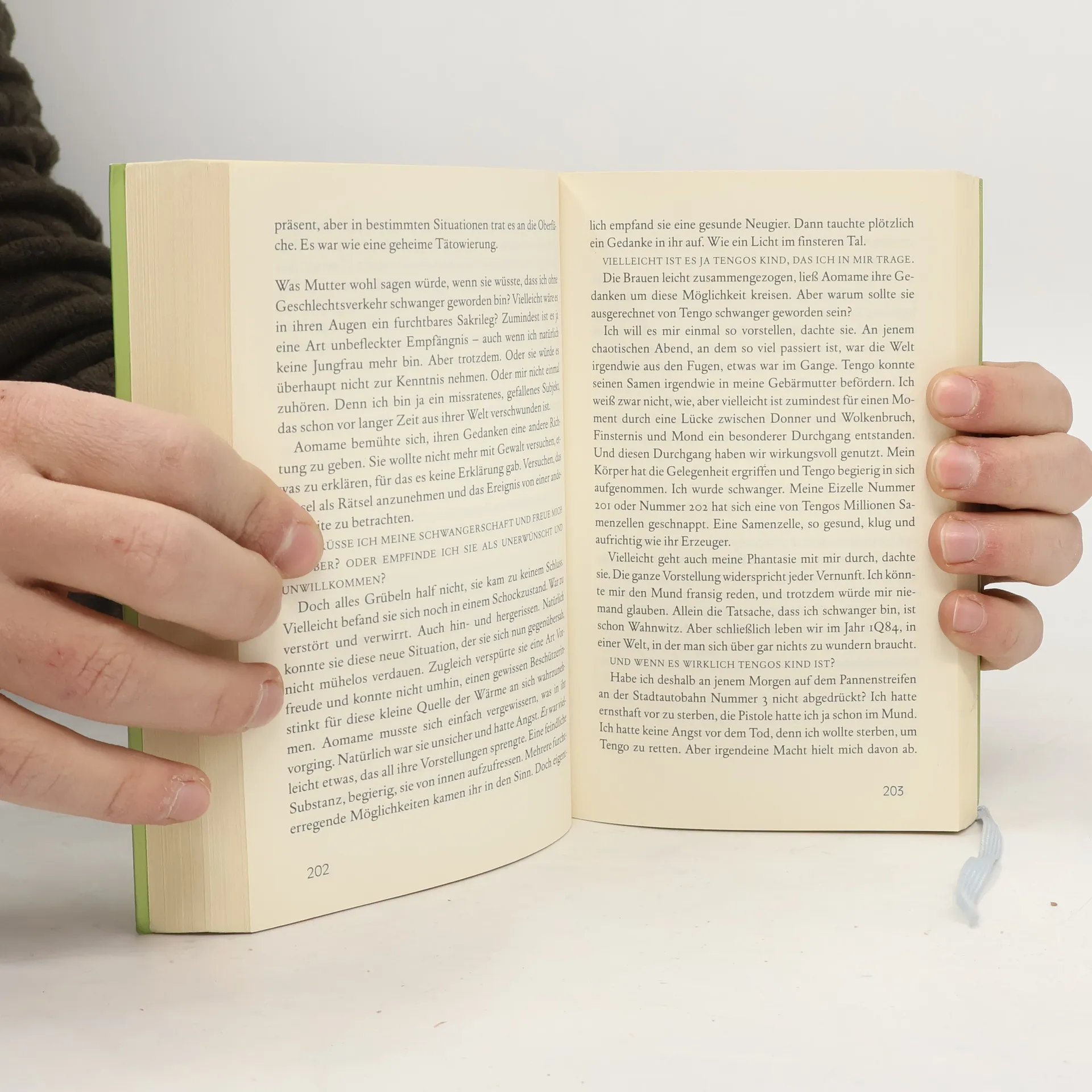 Als Tengo seinen komatösen Vater im Krankenhaus besuchen will, findet er in dessen Krankenbett eine »Puppe aus Luft« vor, die ein Abbild Aomames als junges Mädchen in sich birgt. Er greift nach ihrer Hand, und eine unsichtbare Verbindung entsteht. Fortan wartet Tengo darauf, der Puppe nochmals zu begegnen, doch vergebens. War das Signal nicht stark genug, um die zwischen Leben und Tod schwankende Aomame zu retten?