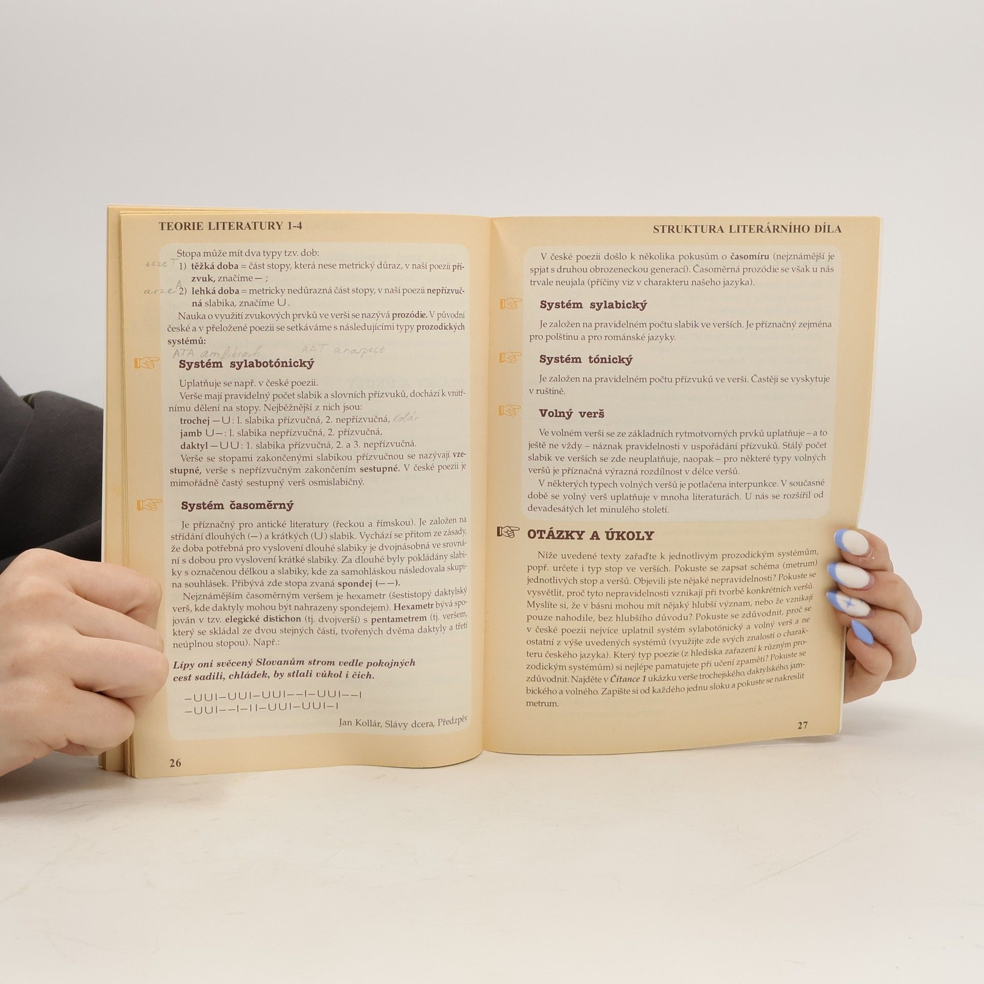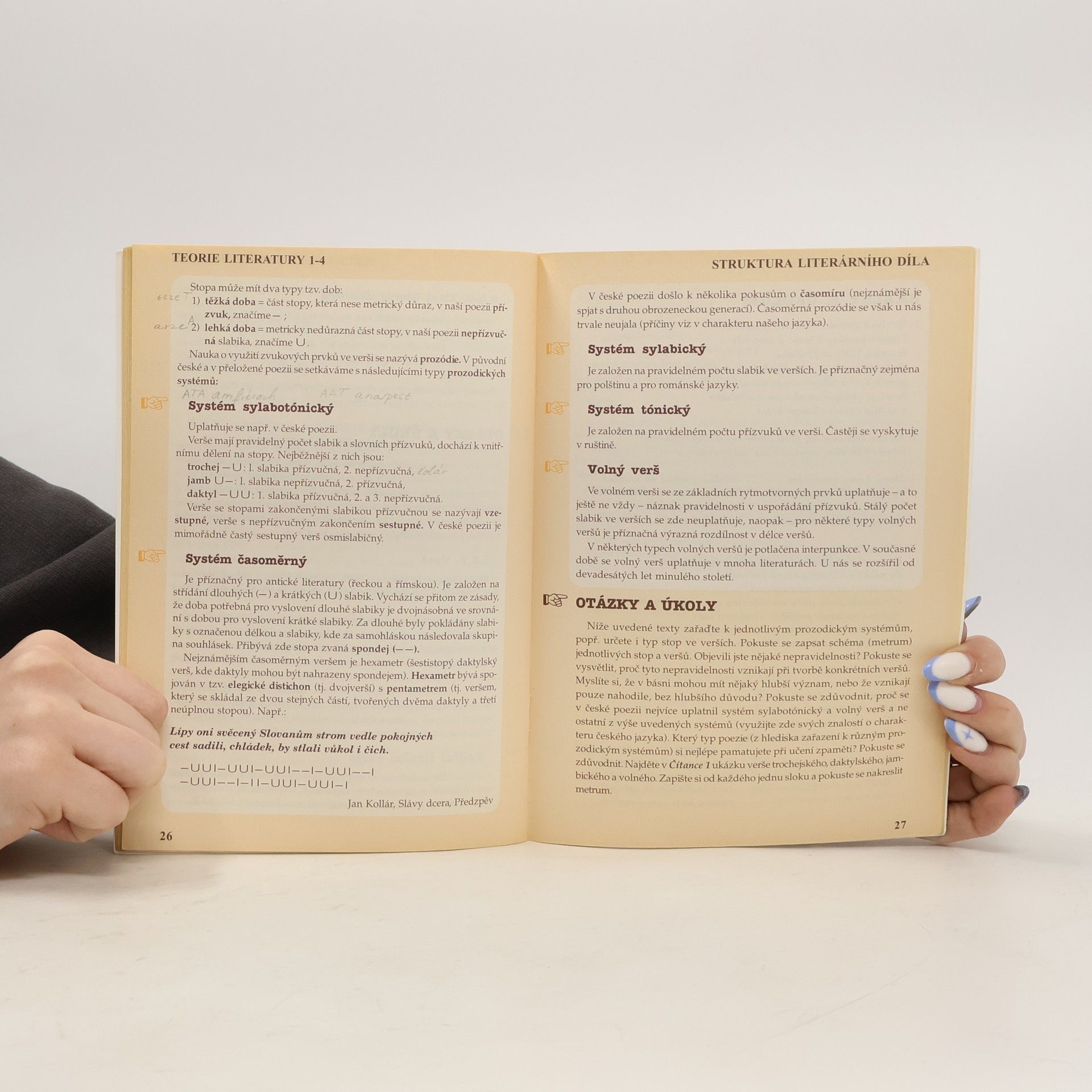 Středoškolská učebnice teorie literatury a kapitolami Lidská potřeba estetického osvojování světa, Dílo jako znak: Struktura literárního díla, Literární druhy (žánry).