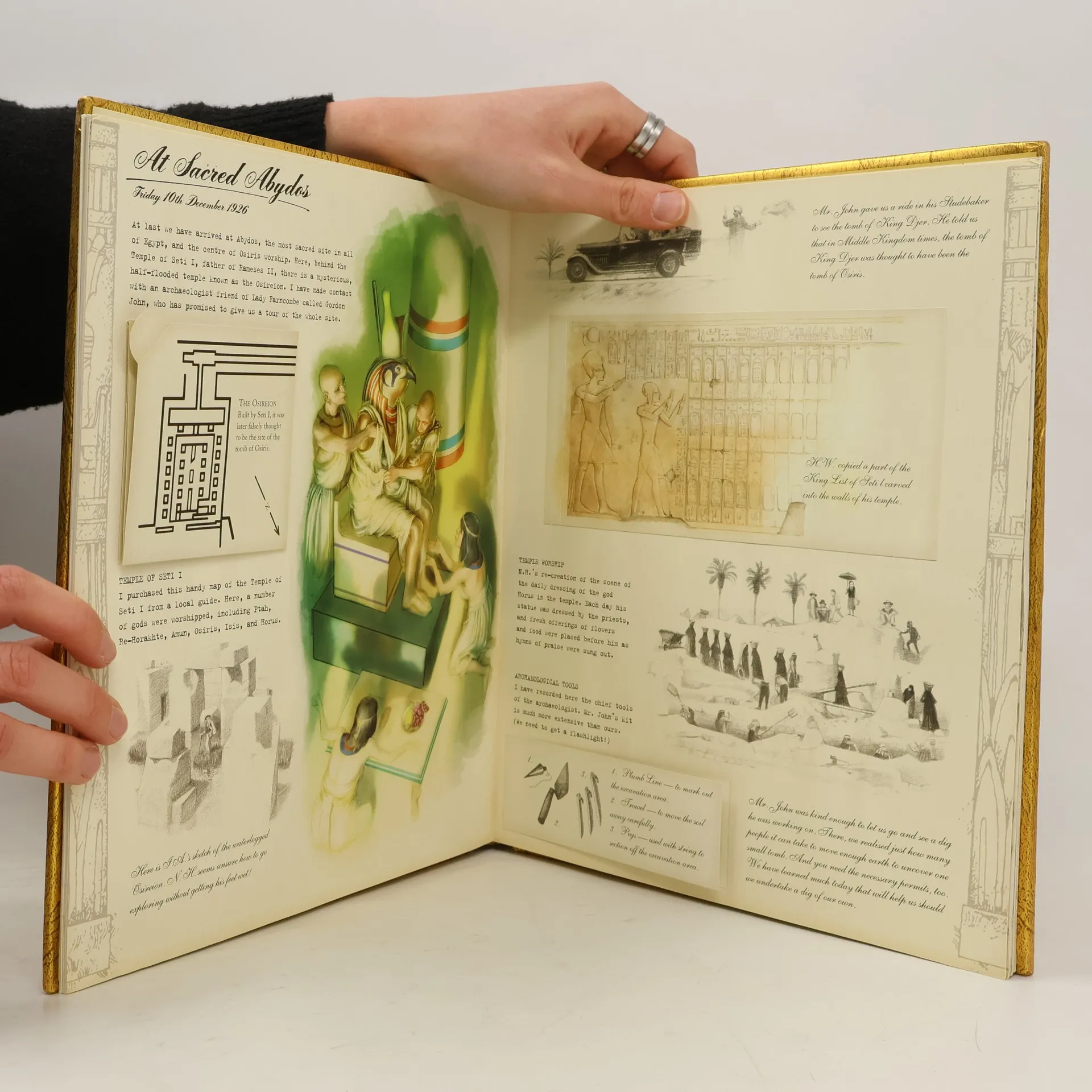 Elaborate facsimile journal of a fictional Emily Sand's 1926 search for the tomb of the god Osiris presents an overview of ancient Egypt and Egyptology.