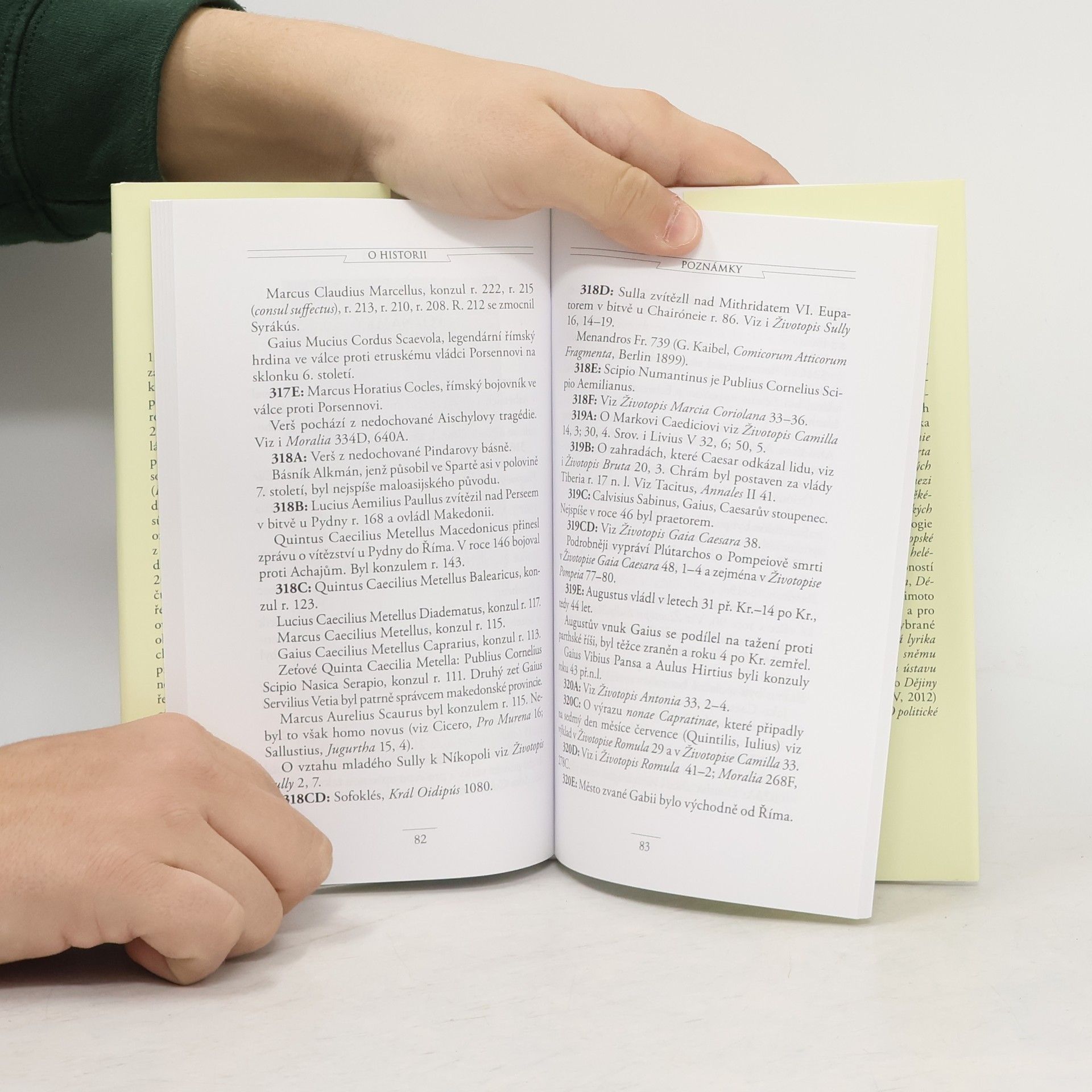 Plútarchos (po 45-po 120) z řecké Chairóneie patří k nejznámějším jménům antické literatury. Proslavily ho především Životopisy slavných Řeků a Římanů (vyd. v AK 2006 a 2007), v nichž vylíčil životní osudy významných řeckých a římských osobností. Mimoto je autorem více než dvou set drobnějších děl, jež věnoval nejrůznějším, především etickým otázkám lidského života (v AK soubory O lásce a přátelství, 1987, O politické činnosti, 2014). Z nich čerpá i svazek O historii, obsahující čtyři pojednání, věnovaná nejslavnějším obdobím a nejproslulejším představitelům řecké a římské historie (O Štěstěně Římanů, O Štěstěně či Zdatnosti Alexandra, Proslavili se Athéňané více ve válce než v umění?). Plútarchos líčí, jak se přitom uplatnila bohyně Tyché (Štěstěny) soupeřící s Areté (Zdatností) a dokládá řadu příkladů z dějin politických a dějin umění.