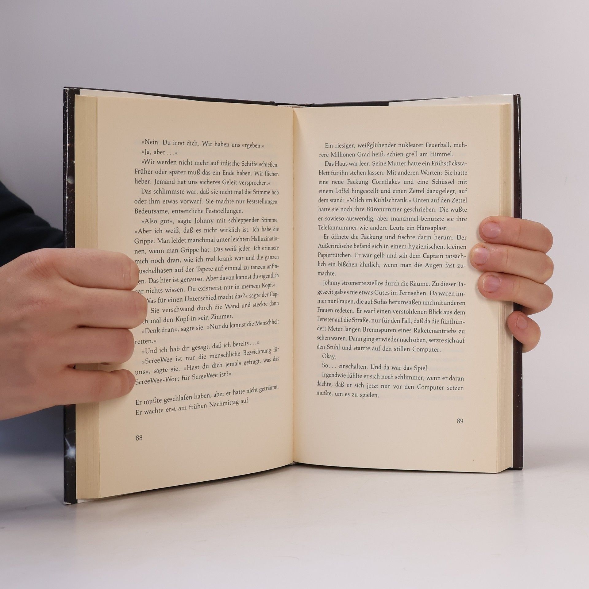 Johnny, zwölf Jahre alt, ist ein Computer-Freak. In seinem neusten Spiel, "Nur Du kannst die Menschheit retten", führt er einen erfolgreichen Kampf gegen die Außerirdischen. Und dann plötzlich, er kann es kaum fassen, bitten ihn diese um Hilfe. Zunächst nicht begeistert, erklärt er sich einverstanden, und ein verrückt-galaktisches Abenteuer nimmt seinen Anfang. (Ab 12 Jahre.)