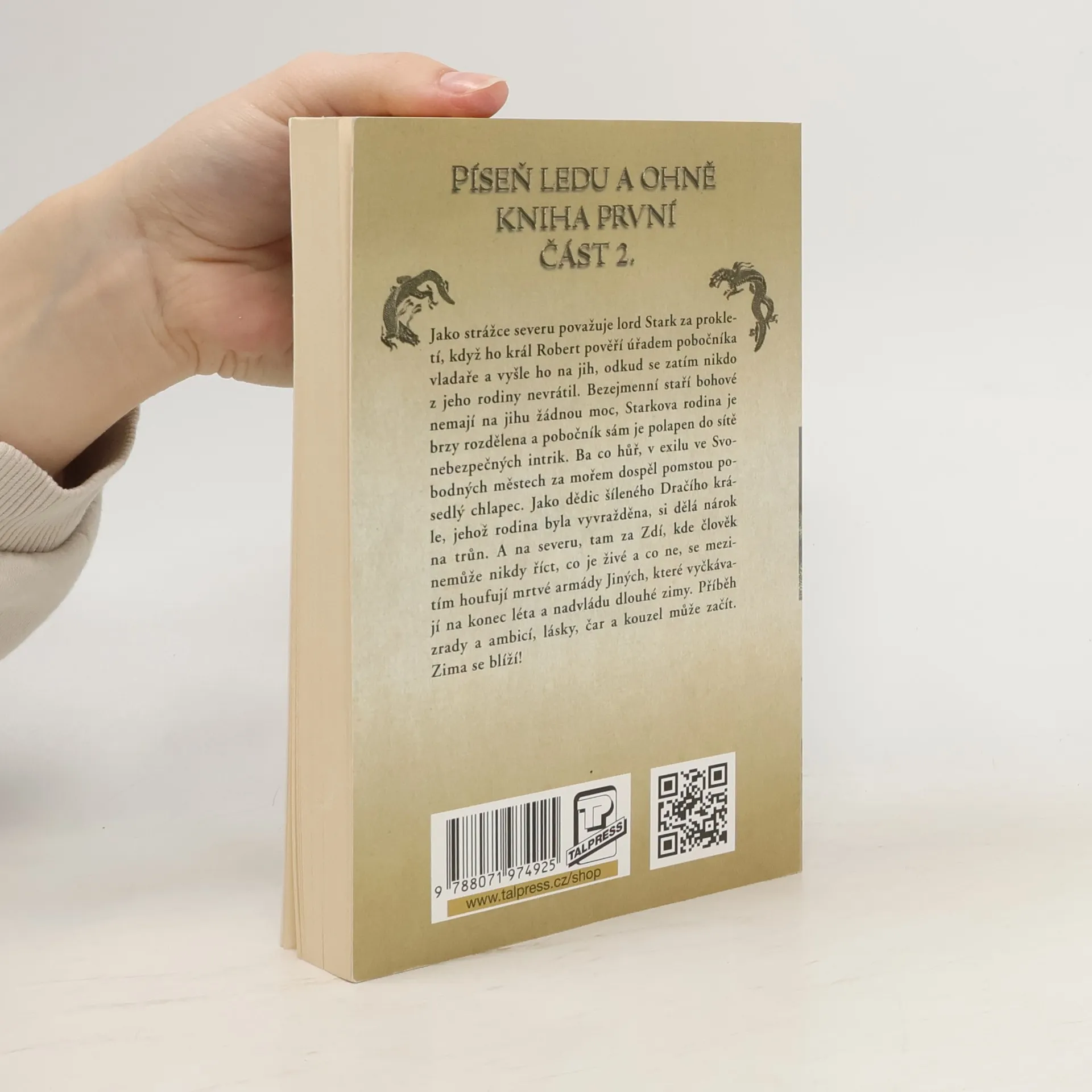 Druhá část prvního dílu heroické fantasy, která se odehrává mezi statečnými rytíři, mocnými čaroději, draky, zlovlky, čarostromy… Hlavním hrdinou knihy je rodina lorda Starka, vládce na Severu, kterého jeho přítel a král Robert pověří hodností pobočníka trůnu. Stark se po příchodu na jih dostane do sítí intrik a zrady. Aby toho nebylo málo, dospěl na jihu poslední syn šíleného Dračího krále, kterého zabil Robert, a snuje pomstu. Na severu se houfují vojska nemrtvých, která čekají jen na to, až odejde léto a přijde zima. 2. vydání.