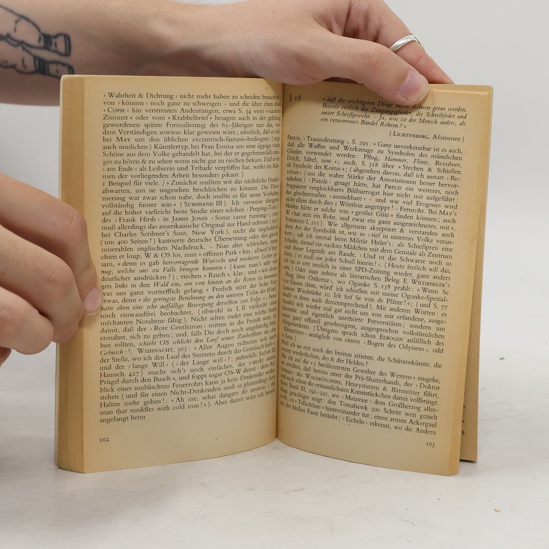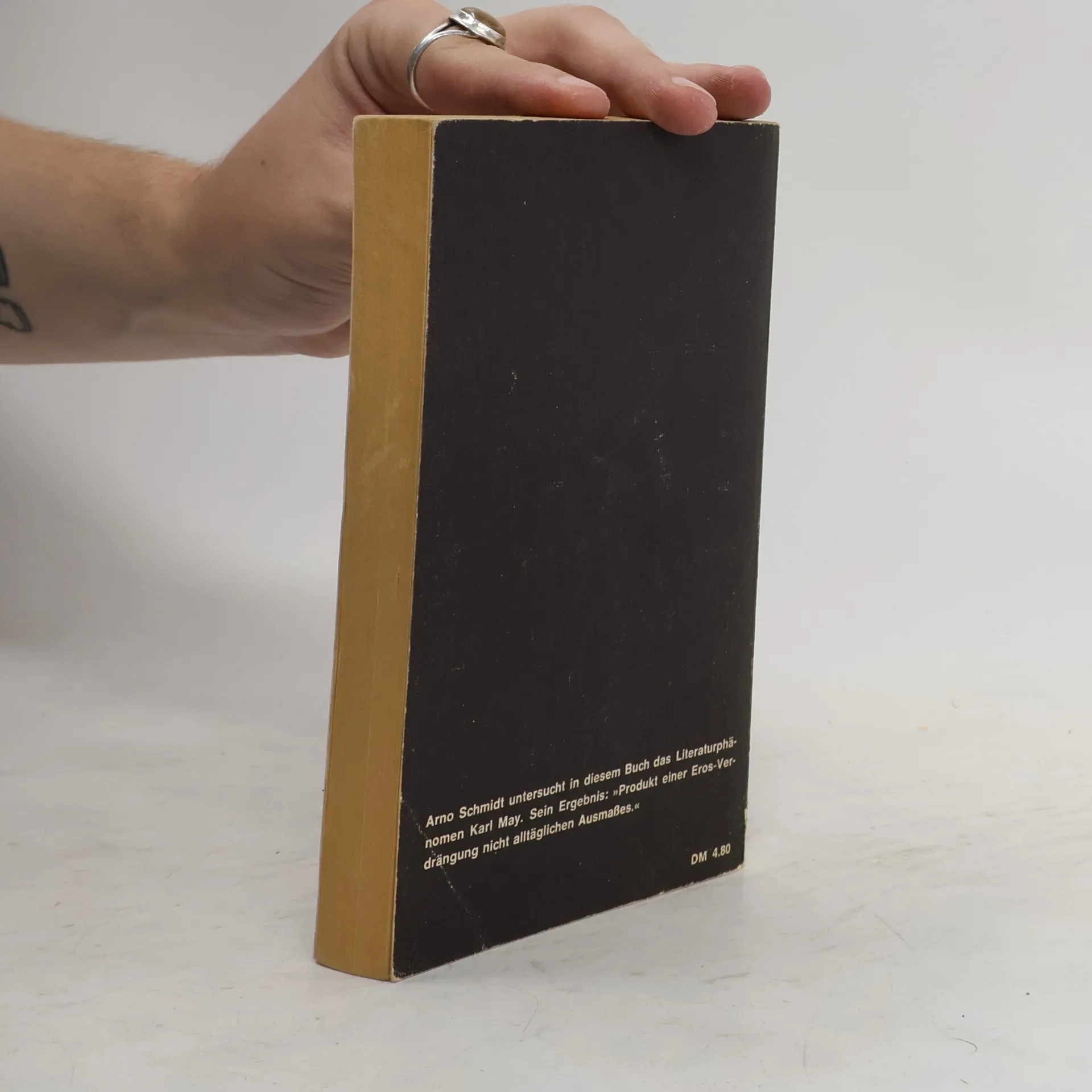 Ernst Jandl sprach von einem »Spaß im Walfischformat«, als er 1963 den eben erschienenen Band Sitara und der Weg dorthin, »eine Studie über Wesen, Werk & Wirkung Karl May's« in die Hände bekam. Unter dem Eindruck der Lektüre der Schriften Sigmund Freuds glaubte Schmidt einen neuen Schlüssel für das Werk Karl Mays gefunden zu haben. Zunächst an der Frage interessiert, ob und wie das Unbewußte des Dichters die Kulisse seiner Romane erzeuge, diagnostiziert Schmidt eine »Erosverdrängung nicht alltäglichen Ausmaßes«. Immer ritten Held und Begleiter durch Gras und Gestrüpp, hinein in Täler, Felsspalten und Höhlungen. »Für MAY scheint nicht, wie bei so vielen andern Künstlern & Menschenmännchen der Fall, die weibliche Brust die dominierende erotische Anregung und Initialzündung ergeben zu haben (...) sondern das Gesäß.« Die sprachlichen Mittel ebenso wie die landschaftliche Kulisse und die einander in die Arme schnellenden Winnetou und Old Shatterhand trügen, so Schmidt, eindeutig homoerotische Züge.