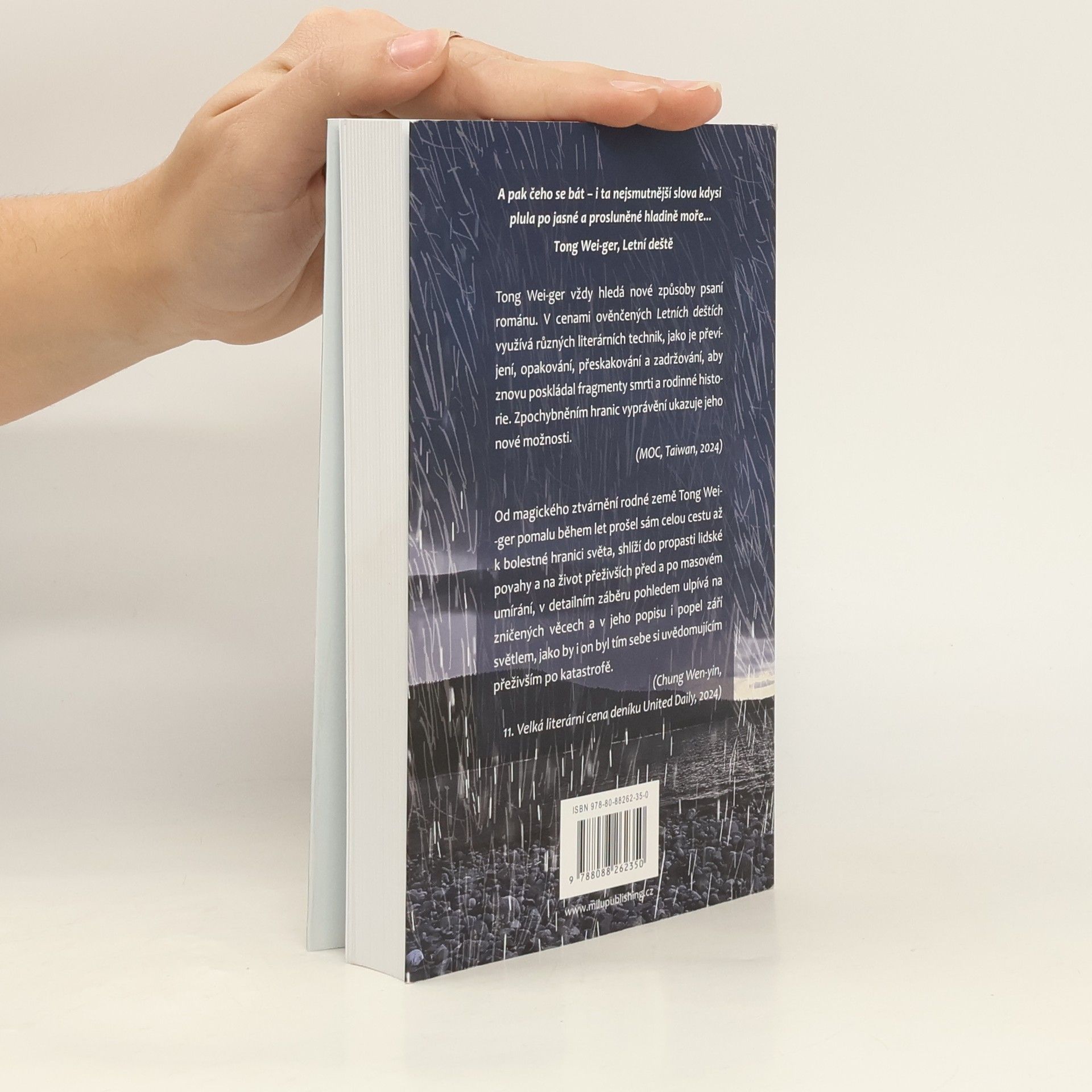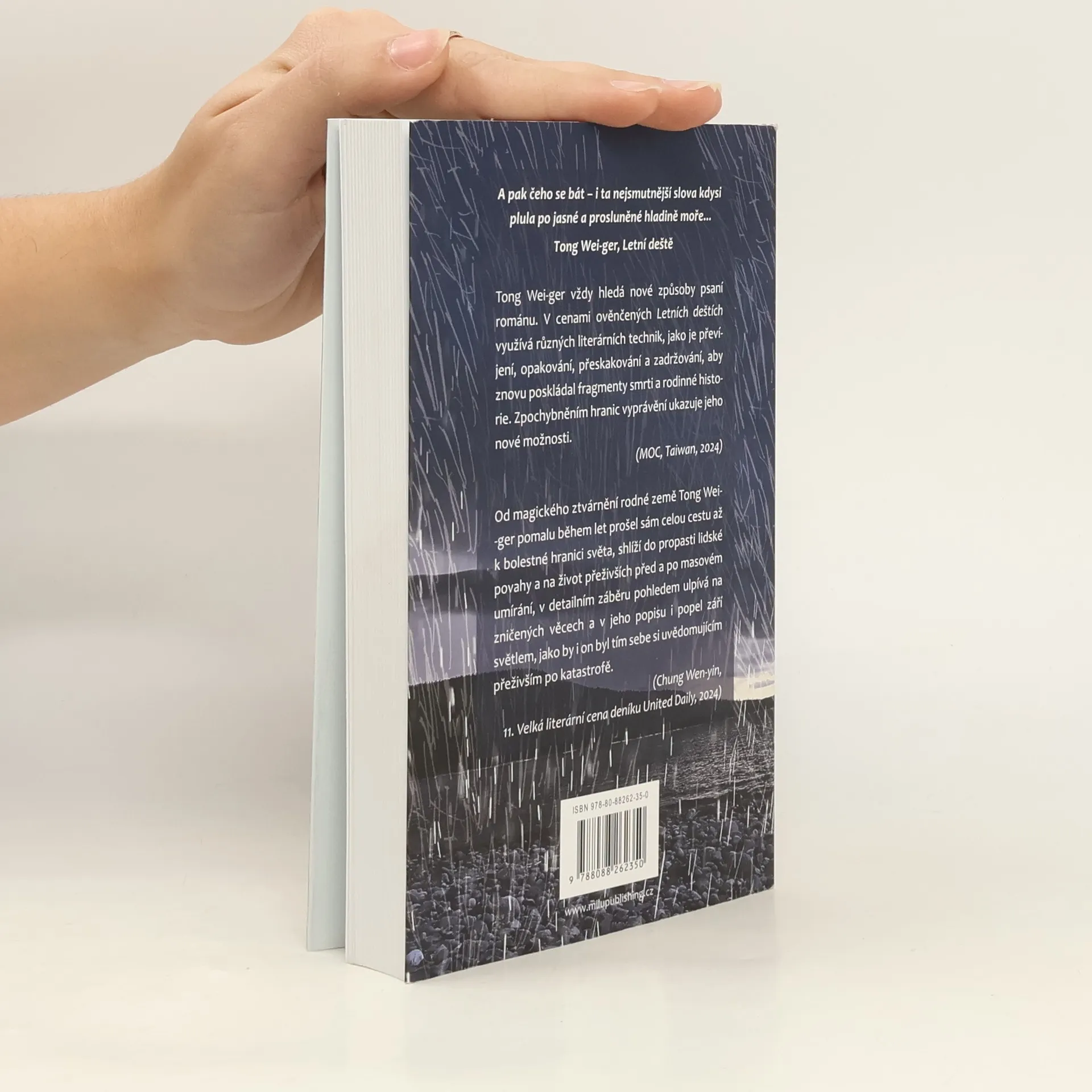 Román Letní deště (2010) lze číst jako detektivku, jako psychologické drama i jako sled surreálných obrazů využívajících specifik tchajwanské imaginace a reálií. Vychází z krajiny autorova dětství, čerpá z místních zvyků, víry a přírody, z pocitů ztrát i vlastní nedostatečnosti, z nostalgie i touhy po vzájemné blízkosti, která překračuje hranice života a smrti. Poutavě vás vtáhne do života čtyř generací jedné rodiny, odhalí traumatické prožitky i cesty k usmíření a podmaní si vás nezaměnitelnou atmosférou vyprávění. Zavede vás na sever Tchaj-wanu do starých čtvrtí měst, do přímořských oblastí a do vesnice v srdci hor a poodhalí vám život na jednom z malých ostrovů v Tchajwanské úžině.