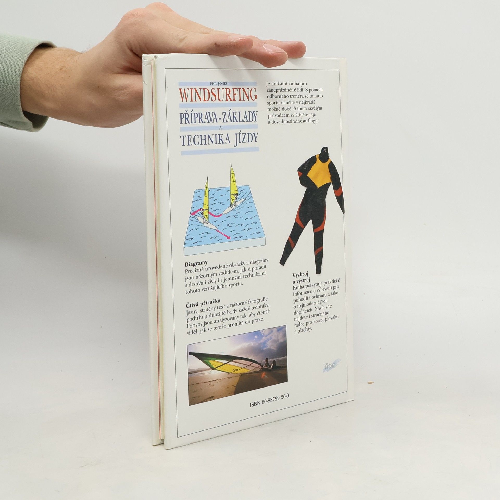 S tímto skvělým prúvodcem zvládněte taje a dovednosti windsurfingu. Kapitoly: Windsurf a jeho části, Nošení výzbroje, Neoprenové obleky, Oblečení, S větrem o závod, Zpúsoby plachtění, Sestavení plachty, Spuštění a vodu, Startovní pozice, Otočení o 180 stupňú, Rozjezd, Řízení, Držení těla, Návrat ke břehu, Proti větru, Obrat, S větrem v zádech, Přehození, Cvičný okruh, Svépomoc, Plachtění na moři, Kde plachtit, Kdy plachtit, Sedm přikázání, Pravidla provozu, Silný vítr, Koupě widsurfu.