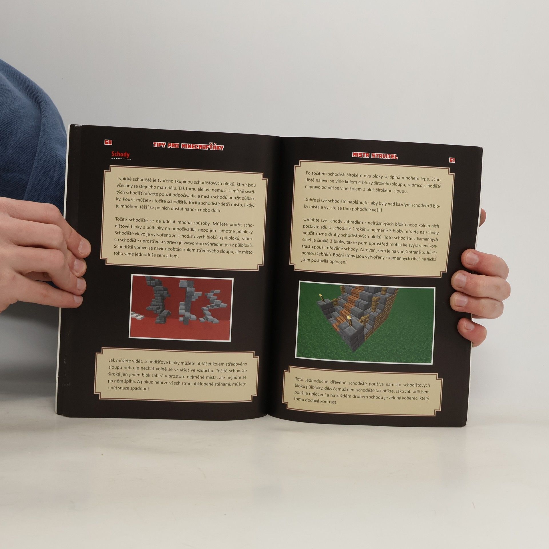 Tato kniha není autorizována ani podporována společnostmi Mojang AB, Notch Development AB nebo Scholastic Inc. ani jinou osobou či společností, která vlastní autorská práva na jméno či značku hry Minecraft. Naučte se od mistra Minecraftu spoustu nových triků, odhalte tajemství nejlepších stavitelů a popusťte uzdu své fantazii! S více než sto miliony registrovaných hráčů je Minecraft jednou z nejpopulárnějších her současnosti. S Příručkou mistra stavitele se dozvíte, jak z hranatých kostek postavit kruh a kouli, zvelebit a zdokonalit svůj protimobový kryt nebo postavit dům pod vodní hladinou. Prostě všechno, co potřebuje vědět každý fanoušek režimu Tvořivá hra. S touto příručkou se naučíte stavět: - Tvary – jak z kostek udělat kruh? - Budovy – od menších domů po složité vily - Doplňky – vdechněte svým stavbám život - Originály – je libo vzducholoď, hrad nebo pagodu? Díky tomu budete mít postaráno o desítky hodin zábavy a kreativního vyžití! Kniha obsahuje spoustu obrázků přímo ze hry, takže budete moci všechny triky pro stavbu objektů přesně zopakovat ve vlastním světě. Na konci této knihy budete mít svět, o kterém jste vždycky snili.