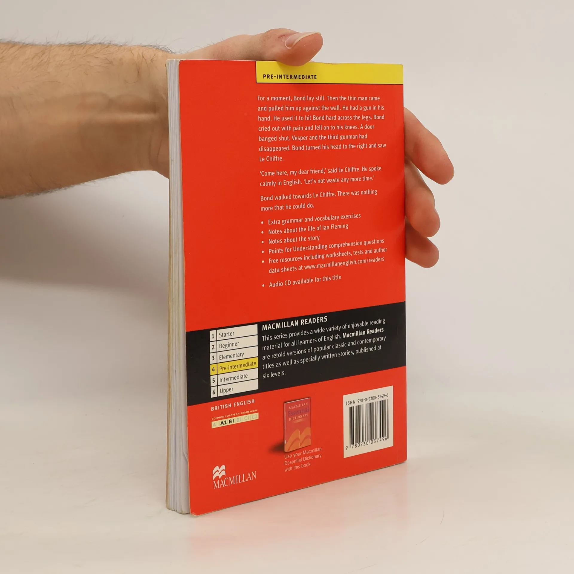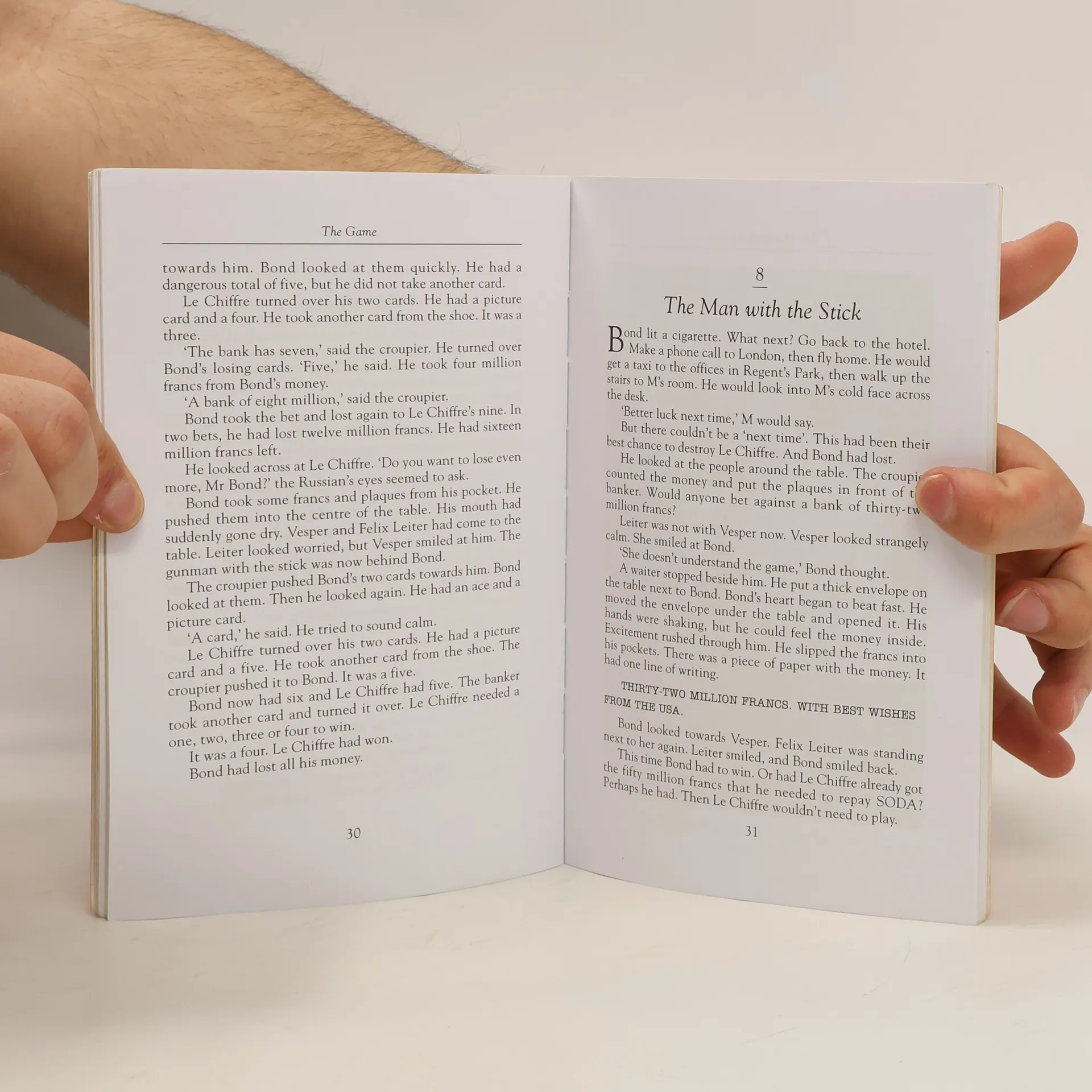 For a moment, Bond lay still. Then the thin man came and pulled him up against the wall. He had a gun in his hand. He used it to hit Bond hard across the legs. Bond cried out with pain and fell on to his knees. Bond turned his head to the right and saw La Chiffre.--Quatrième de couverture.
