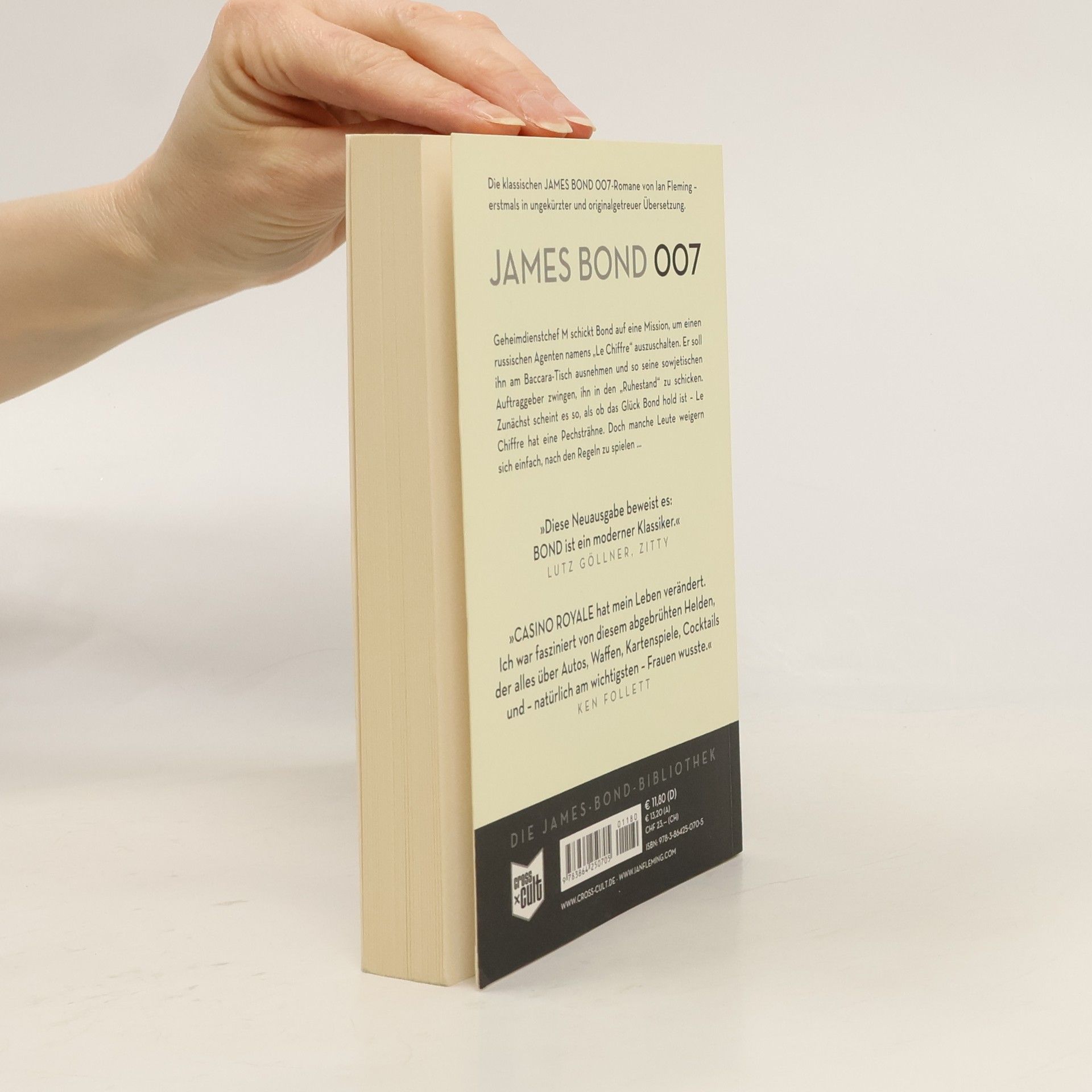 Ein britischer Geheimagent wird nach Frankreich geschickt, um einen feindlichen Agenten namens „Le Chiffre“ beim Kartenspiel zu ruinieren. Geheimdienstchef M beauftragt Bond, Le Chiffre am Baccarat-Tisch zu besiegen, um ihn zu zwingen, sich von seinen sowjetischen Auftraggebern zurückzuziehen. Zunächst hat Bond Glück, da Le Chiffre eine Pechsträhne hat. Doch das Spiel wird kompliziert, als eine attraktive Agentin Bond in Schwierigkeiten bringt und er schließlich unerwartet gerettet wird. Die teils stark abweichenden Verfilmungen der James-Bond-Romane sind weithin bekannt. Anlässlich des 50-jährigen Jubiläums der Filmreihe werden die Originale von Ian Fleming erstmals im „Director's Cut“ veröffentlicht. Die Filmikone feiert ihr Jubiläum, während der 23. Teil der Saga, „Skyfall“, in die Kinos kommt. Cross Cult beteiligt sich an diesem Jubiläum mit einer Wiederentdeckung der meisterhaft erzählten Agenten- und Spionageromane und plant die schrittweise Veröffentlichung aller James-Bond-Originalromane. Leser können sich auf ungekürzte Übersetzungen der Titel wie „Goldfinger“, „Thunderball“ und „You Only Live Twice“ freuen, die mit den ursprünglichen Kapitelüberschriften erscheinen. Diese Sammlung verspricht, eine einzigartige James-Bond-Bibliothek zu werden, die den Kult um den britischen Gentleman-Geheimdienstler mit der „Lizenz zum Töten“ erkundet.