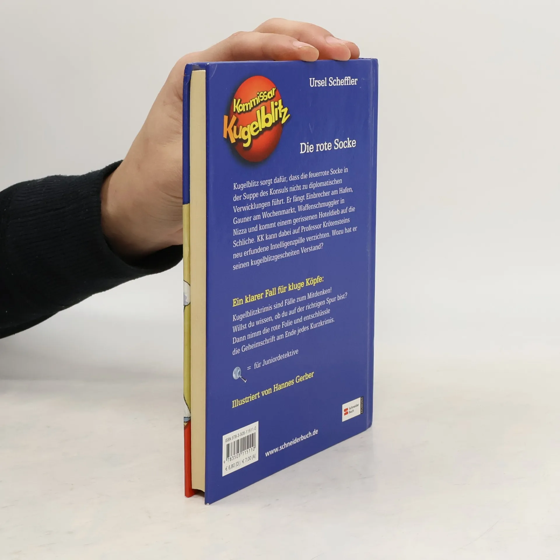 Kugelblitz sorgt dafür, dass die feuerrote Socke in der Suppe des Konsuls nicht zu diplomatischen Verwicklungen führt. Er fängt Einbrecher am Hafen, Gauner am Wochenmarkt, Waffenschmuggler in Nizza und kommt einem gerissenen Hoteldieb auf die Schliche. KK kann dabei auf Professor Krötensteins neu erfundene Intelligenzpille verzichten. Wozu hat er seinen kugelblitzgescheiten Verstand?