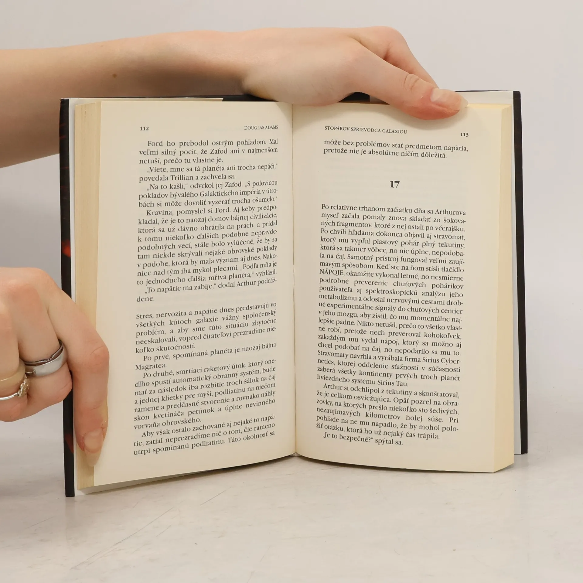 Arthurovi Dentovi, celkom obyčajnému človiečikovi kdesi z Anglicka, raz vo štvrtok ráno prídu zdemolovať dom, vraj kvôli stavbe diaľničného obchvatu. Snaží sa tomu zabrániť bojovným polihovaním pred buldozérom, no jeden z jeho priateľov, Ford Prefect, ho viac-menej nasilu odtiahne do krčmy na tri bleskurýchle pivá, pretože sa blíži koniec sveta. Asi o 12 minút neskôr koniec sveta skutočne nastane v podobe stavebnej čaty mimozemskej rasy Vogónov, ktorí prídu zdemolovať Zem kvôli stavbe hyperpriestorovej diaľnice. Tesne pred touto, pre všetkých ostatných smrteľnou udalosťou, sa Arthur s Fordom presunú na vogónsku stavebnú loď, ktorá ich odvezie do hlbín vesmíru. Ford totiž nepochádza z Guildfordu, ako na Zemi zvyčajne tvrdil, ale z malej planéty kdesi v okolí Betelgeuze, a pracuje ako terénny prieskumník pozoruhodnej knihy s názvom Stopárov sprievodca galaxiou – akéhosi elektronického bedekra pre vesmírnych stopárov obsahujúceho všetky informácie, ktoré potrebujete, ak túžite vidieť krásy vesmíru za menej ako tridsať altairských dolárov denne.