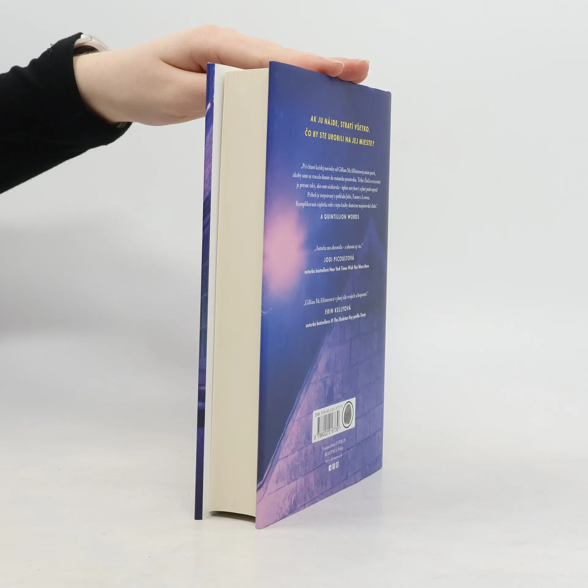 Jeho zbraňou nie je pištoľ ani nôž, ale jej najtemnejšie tajomstvo. Nie každý, kto je nezvestný, by mal byť nájdený. Lebo ak ho nájdu, všetko je stratené. Dvadsaťdvaročná Olivia zmizla bez stopy. Naposledy ju zachytili pouličné kamery, ako vchádza do slepej uličky, odkiaľ sa už nevrátila. Detektívka Julia Dayová našla počas dvadsaťročnej praxe takmer každého nezvestného. Má bohaté skúsenosti so zúfalými rodinami zmiznutých, uvedomuje si neúprosne plynúci čas po ich zmiznutí a navyše ju práca oberá o chvíle s dcérou a manželom. Jej povolanie si vyberá svoju daň, no to ešte netuší, ako veľmi sa jej života dotkne najnovší prípad Olivie. Únosca má totiž niečo, s čím nepočítala. Nie je to zbraň, je to tajomstvo. Jej najtemnejšie tajomstvo. Bezpečnosť Juliinej rodiny závisí od jedinej veci: nesmie zistiť, čo sa stalo s Oliviou – a navyše musí z jej vraždy obviniť niekoho iného. Pokiaľ by Oliviu predsa len našla, prišla by o všetko. Tento brilantný triler s nečakanými zvratmi od autorky bestsellera V nesprávnom čase na nesprávnom mieste prináša hlbokú úvahu o rodine, materstve a rozhodnutiach na hranici medzi správnou a nesprávnou voľbou.