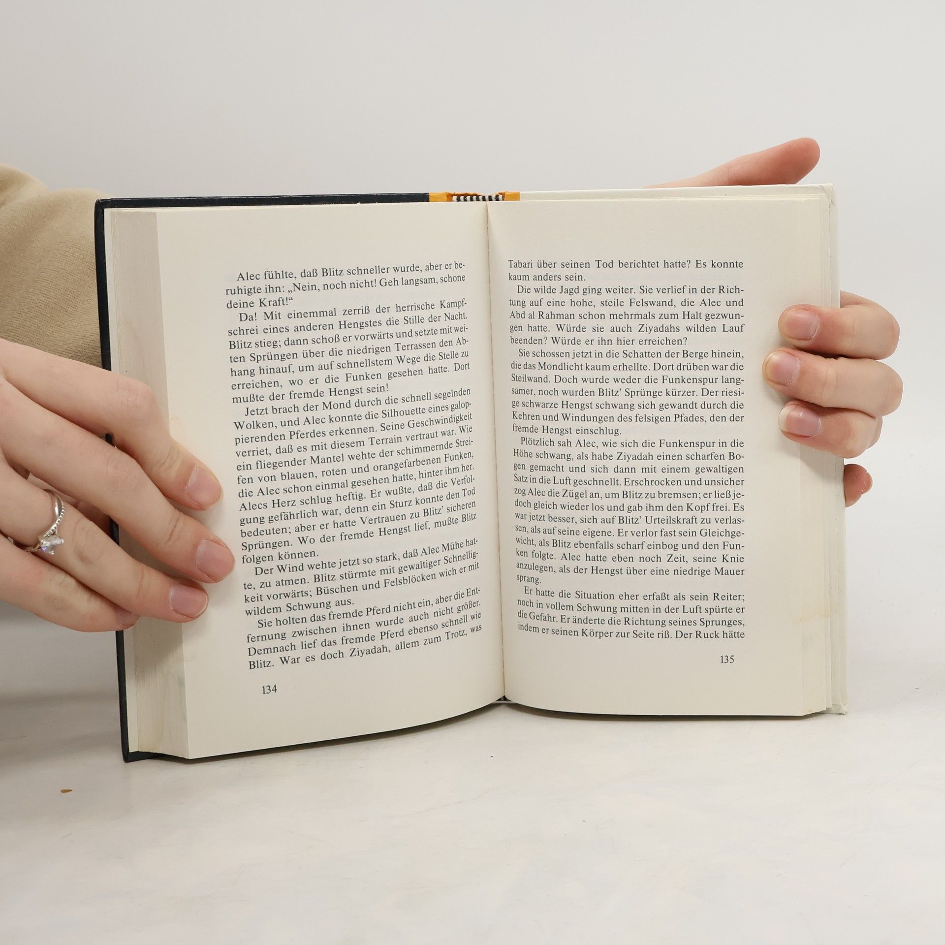 Mit trommelnden Hufen jagt ein geheimnisvolles Pferd nachts durch das wilde Bergland. Niemand hat das Pferd je aus der Nähe gesehen, es scheint kein Hindernis zu kennen. Auf abenteuerliche Weise geraten Alex Ramsey und sein berühmter Hengst Blitz in die Nähe des Geisterpferdes. Könnte es der legendäre arabische Goldfuchs sein, der Vater von Blitz?