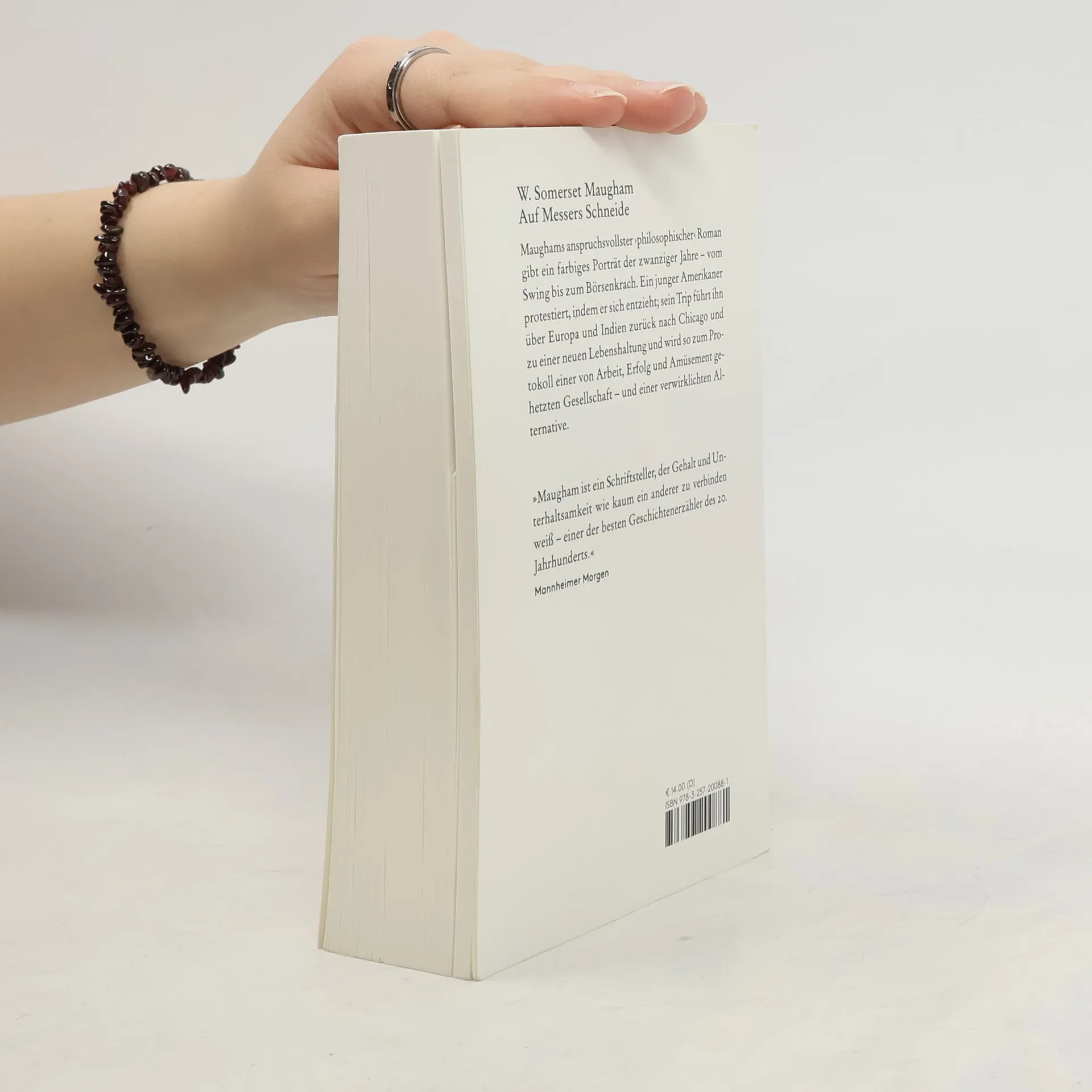 Maughams anspruchsvollster philosophischer Roman gibt ein farbiges Porträt der zwanziger Jahre vom Swing bis zum Börsenkrach. Ein junger Amerikaner protestiert, indem er sich entzieht; sein Trip nach Chicago über Europa nach Indien zu einer neuen Lebenshaltung wird zum Protkoll einer von Arbeit, Erfolg und Amüsement gehetzten Gesellschaft - und einer verwirklichten Alternative."