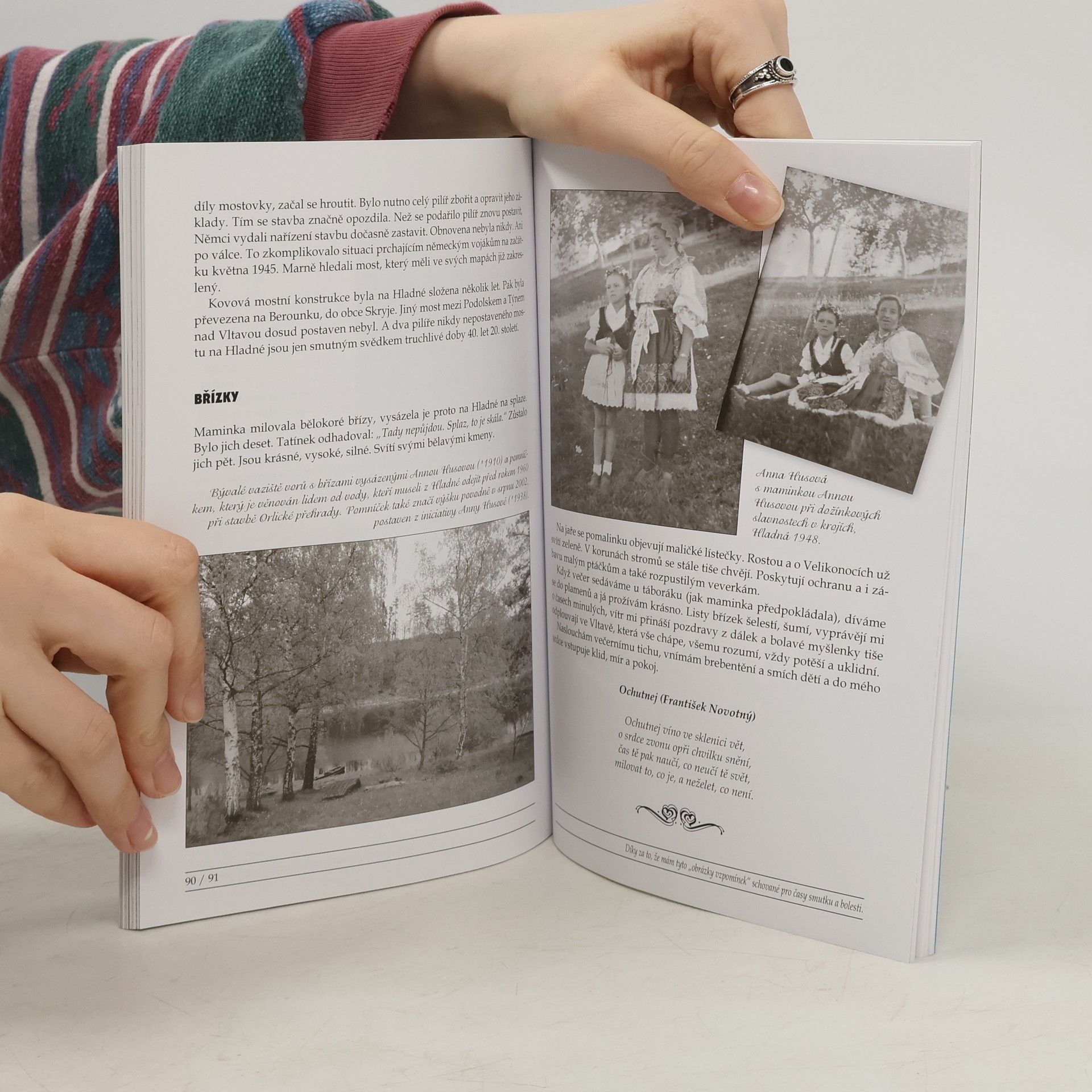 Anna Husová, dcera Vojtěcha Husy a sestra Václava Husy, po několik desetiletí sbírá a dokumentuje fotografie vorařství, spravuje rodinné kroniky a alba. S láskou vzpomíná na své rodiče, na svého milovaného strýce Josefa a na své prarodiče. Také na pana Václava Seidla, který v době jejího dětství a dospívání z Prahy jezdil na Hladnou (malá plavecká osada u Albrechtic nad Vltavou) jako letní host a fotografoval život na vodě a kolem vody. A tak má rodina Husů v archivu mnoho originálních fotografií. V knize "Vzpomínky nezatopené" se přeneseme v čase a budeme sledovat život u řeky Vltavy na Hladné v jednotlivých ročních obdobích, všímat si radostí i starostí lidí, které spojovala láska k řece a k přírodě. A tak se ocitneme na vazišti vorů a pak hned na přívozu nebo se budeme procházet po vltavských stráních a zadíváme se na nespoutanou "starou řeku". Vzpomínky plynou jak barevný film…