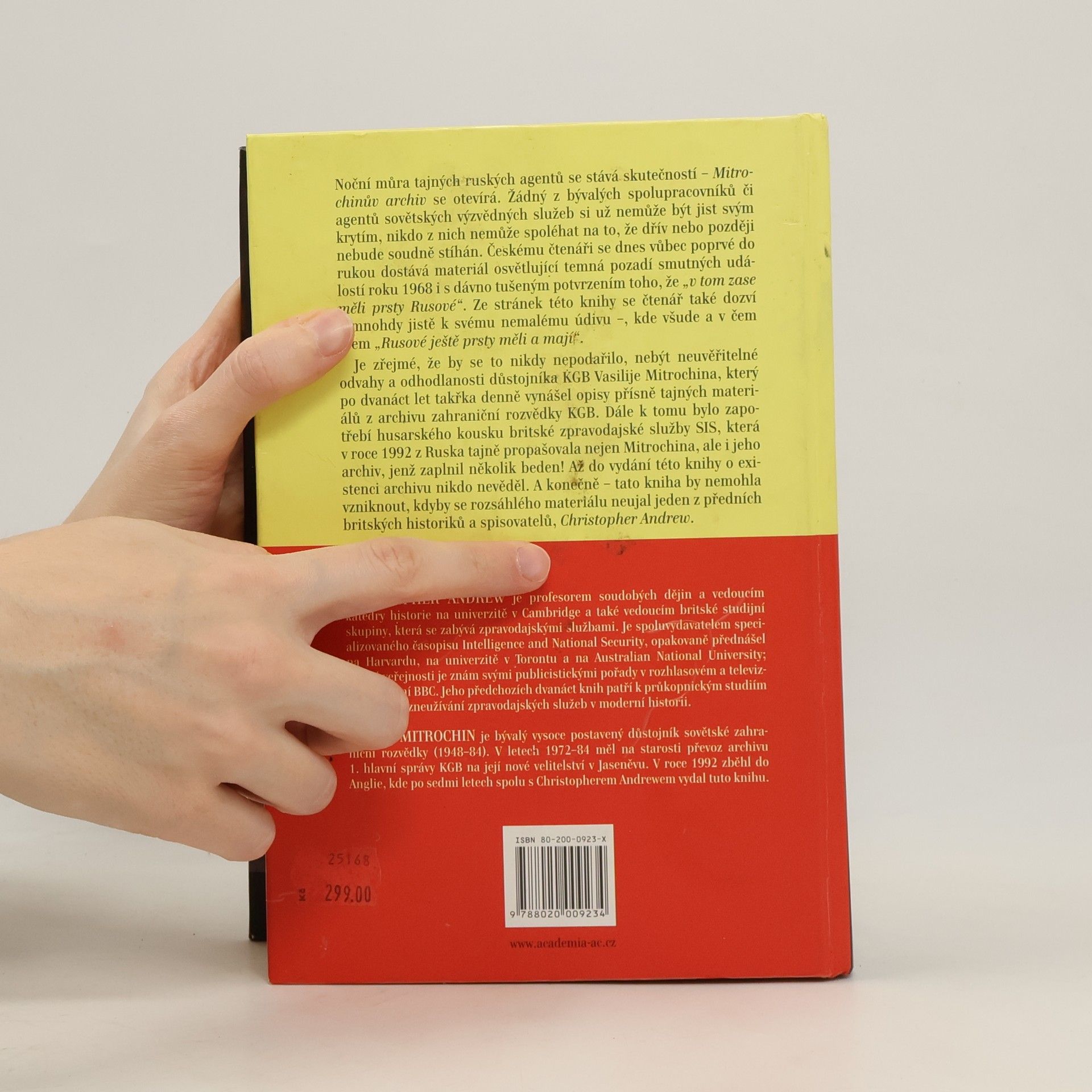 Druhé vydání. Noční můra tajných ruských agentů se stává skutečností – Mitrochinův archiv se otevírá. Žádný z bývalých spolupracovníků či agentů sovětských výzvědných služeb si už nemůže být jist svým krytím, nikdo z nich nemůže spoléhat na to, že dřív nebo později nebude soudně stíhán. Českému čtenáři se tak do rukou dostává materiál osvětlující temná pozadí smutných událostí roku 1968 i s dávno tušeným potvrzením toho, že „v tom zase měli prsty Rusové“. Ze stránek této knihy se čtenář také dozví – mnohdy jistě k svému nemalému údivu –, kde všude a v čem všem „Rusové ještě prsty měli a mají“. Je zřejmé, že by se to nikdy nepodařilo, nebýt neuvěřitelné odvahy a odhodlanosti důstojníka KGB Vasilije Mitrochina, který po dvanáct let takřka denně vynášel opisy přísně tajných materiálů z archivu zahraniční rozvědky KGB. Dále k tomu bylo zapotřebí husarského kousku britské zpravodajské služby SIS, která v roce 1992 z Ruska tajně propašovala nejen Mitrochina, ale i jeho archiv, jenž zaplnil několik beden! Až do vydání této knihy o existenci archivu nikdo nevěděl. A konečně – tato kniha by nemohla vzniknout, kdyby se rozsáhlého materiálu neujal jeden z předních britských historiků a spisovatelů, Christopher Andrew.