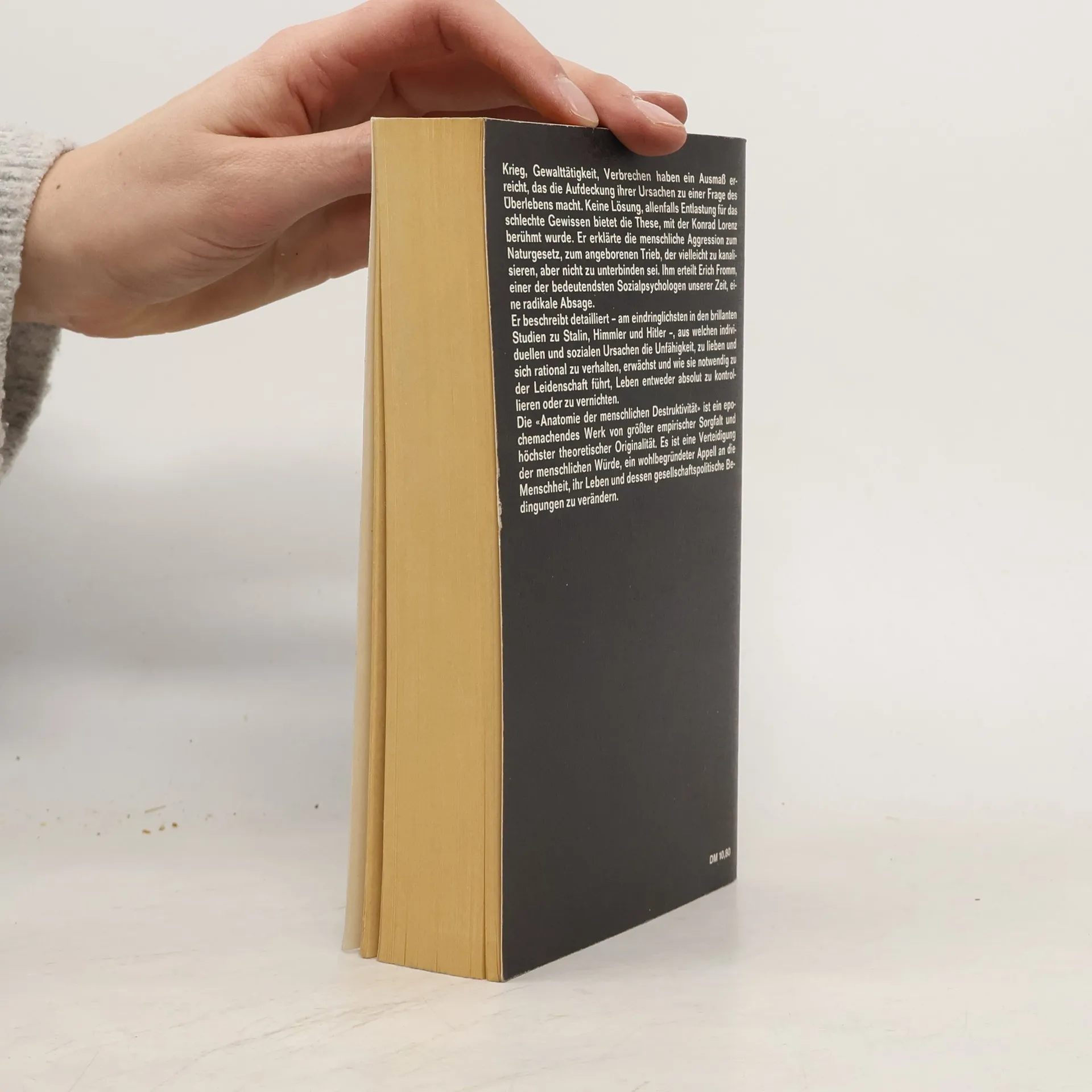 Krieg, Gewalttätigkeit, Verbrechen haben ein Ausmaß erreicht, das die Aufdeckung ihrer Ursachen zu einer Frage des Überlebens macht. Keine Lösung, allenfalls Entlastung für das schlechte Gewissen, bietet die These, mit der Konrad Lorenz berühmt wurde. Er erklärte die menschliche Aggression zum Naturgesetz, zum angeborenen Trieb, der vielleicht zu kanalisieren, aber nicht zu unterbinden sei. Ihm erteilt Erich Fromm, einer der bedeutendsten Sozialpsychologen unserer Zeit, eine radikale Absage. Er beschreibt detailliert – am eindringlichsten in den brillanten Studien zu Stalin, Himmler und Hitler –, aus welchen individuellen und sozialen Ursachen die Unfähigkeit, zu lieben und sich rational zu verhalten, erwächst und wie sie notwendig zu der Leidenschaft führt, Leben entweder absolut zu kontrollieren oder zu vernichten. Die «Anatomie der menschlichen Destruktivität» ist ein epochemachendes Werk von größter empirischer Sorgfalt und höchster theoretischer Originalität. Es ist eine Verteidigung der menschlichen Würde, ein wohlbegründeter Appell an die Menschheit, ihr Leben und dessen gesellschaftspolitische Bedingungen zu verändern.