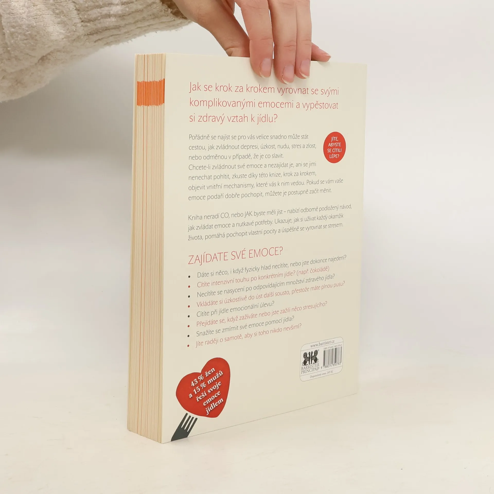 Pořádně se najíst se pro vás velice snadno může stát cestou, jak zvládnout depresi, úzkost, nudu, stres a zlost, nebo odměnou v případě, že je co slavit. Chcete-li zvládnout své emoce a nezajídat je, ani se jimi nenechat pohltit, zkuste díky této knize, krok za krokem, objevit vnitřní mechanismy, které vás k nim vedou. Pokud se vám vaše emoce podaří dobře pochopit, můžete je postupně začít měnit. Kniha neradí CO, nebo JAK byste měli jíst – nabízí odborně podložený návod, jak zvládat emoce a nutkavé potřeby. Ukazuje, jak si užívat každý okamžik života, pomáhá pochopit vlastní pocity a úspěšně se vyrovnat se stresem. Zajídate své emoce? • Dáte si něco, i když fyzicky hlad necítíte nebo jste dokonce najedení? • Cítíte intenzivní touhu po konkrétním jídle? (např. čokoládě) • Necítíte se nasycení po odpovídajícím množství zdravého jídla? • Vkládáte si úzkostlivě do úst další sousto, přestože máte plnou pusu? • Cítíte při jídle emocionální úlevu? • Přejídáte se, když zažíváte nebo jste zažili něco stresujícího? • Snažíte se zmírnit své emoce pomocí jídla? • Jíte raději o samotě, aby si toho nikdo nevšiml?