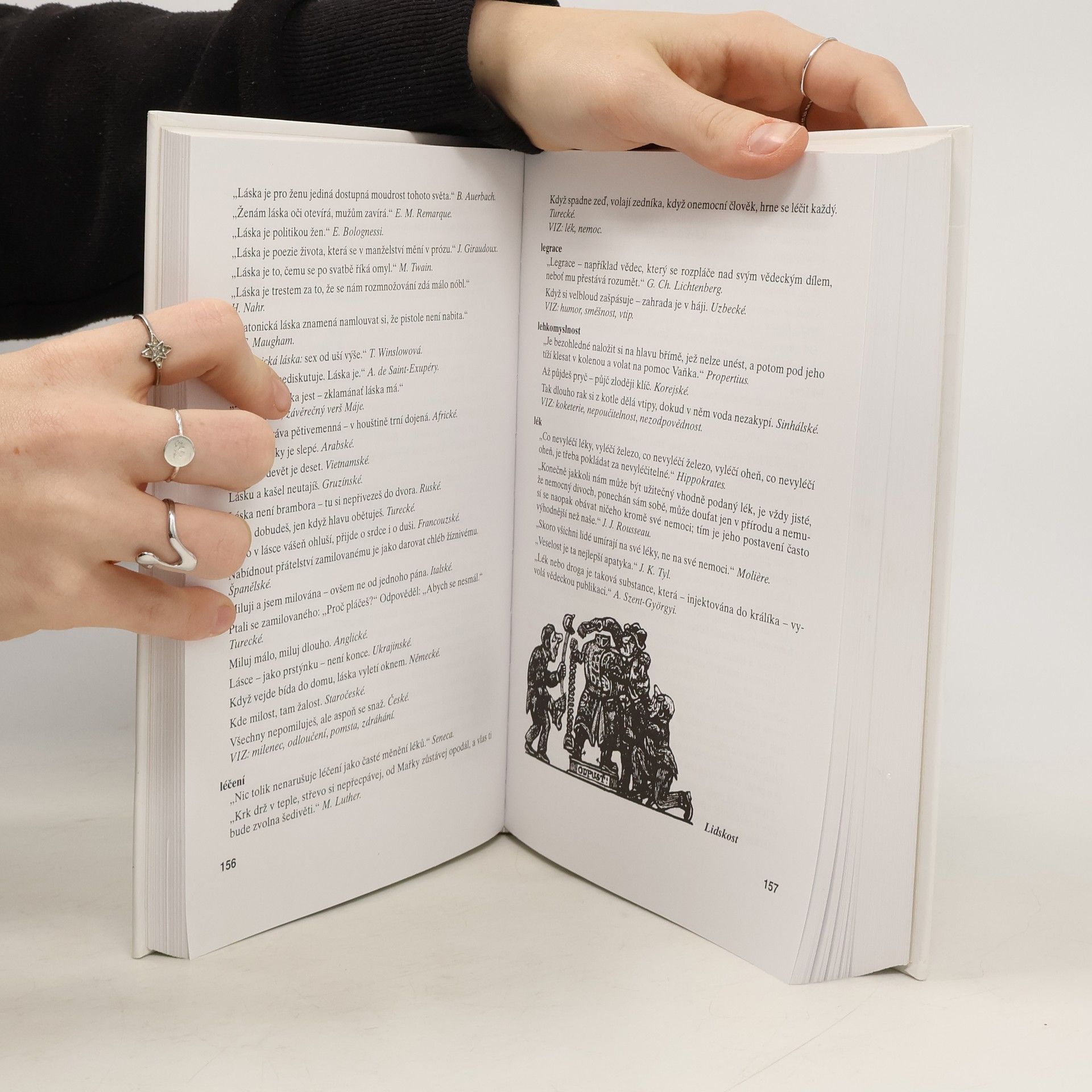 Zábavná encyklopedie moudrosti, ojedinělá šíří záběru, komplexností i přehledným uspořádáním. Citáty z písemných pramenů nejstarších civilizací a světových náboženství; myšlenky antických filozofů; sentence současných myslitelů; výroky slavných umělců, literátů a vědců. Přísloví národů celého eurasijského kontinentu, aforismy, jízlivosti, bonmoty, lidová rčení.