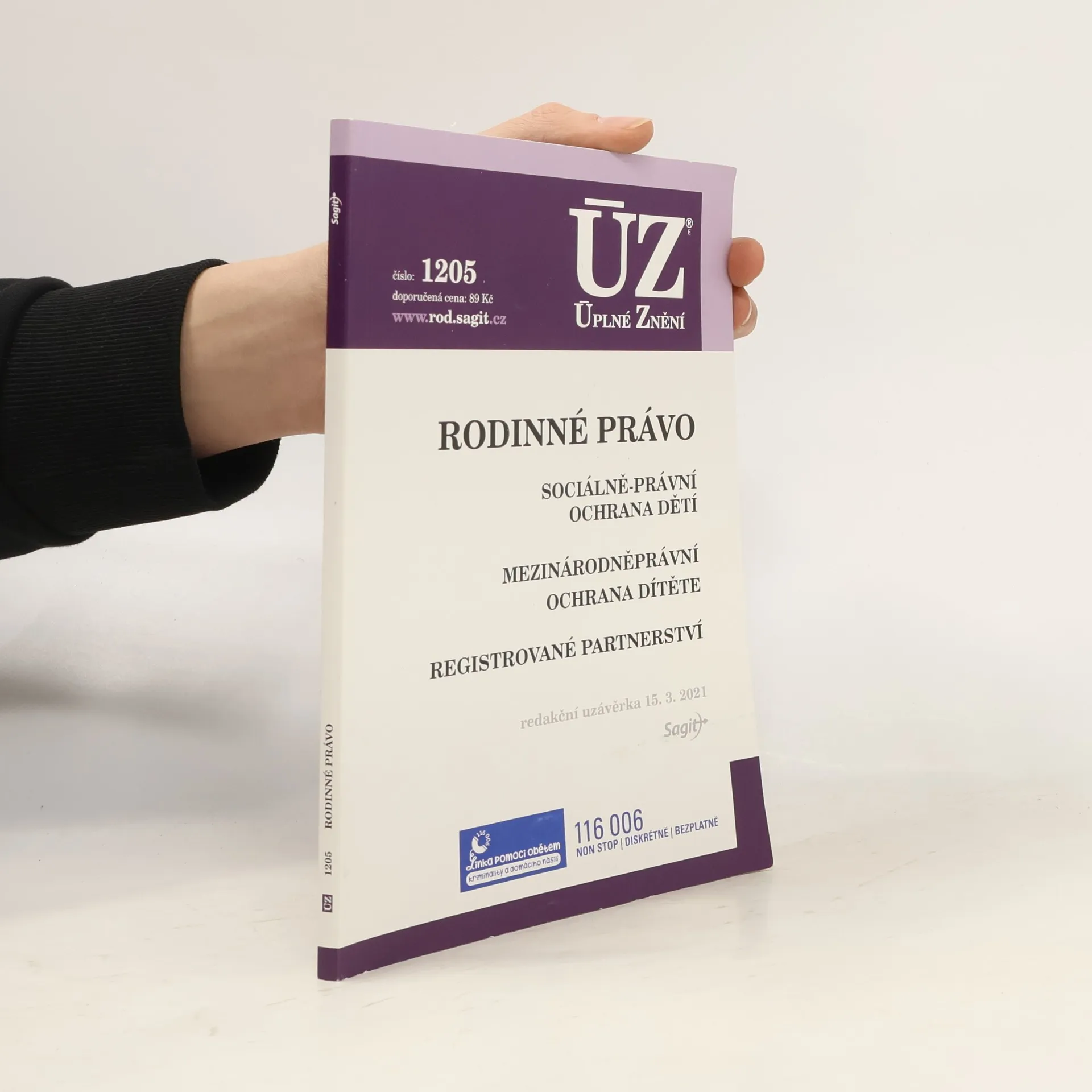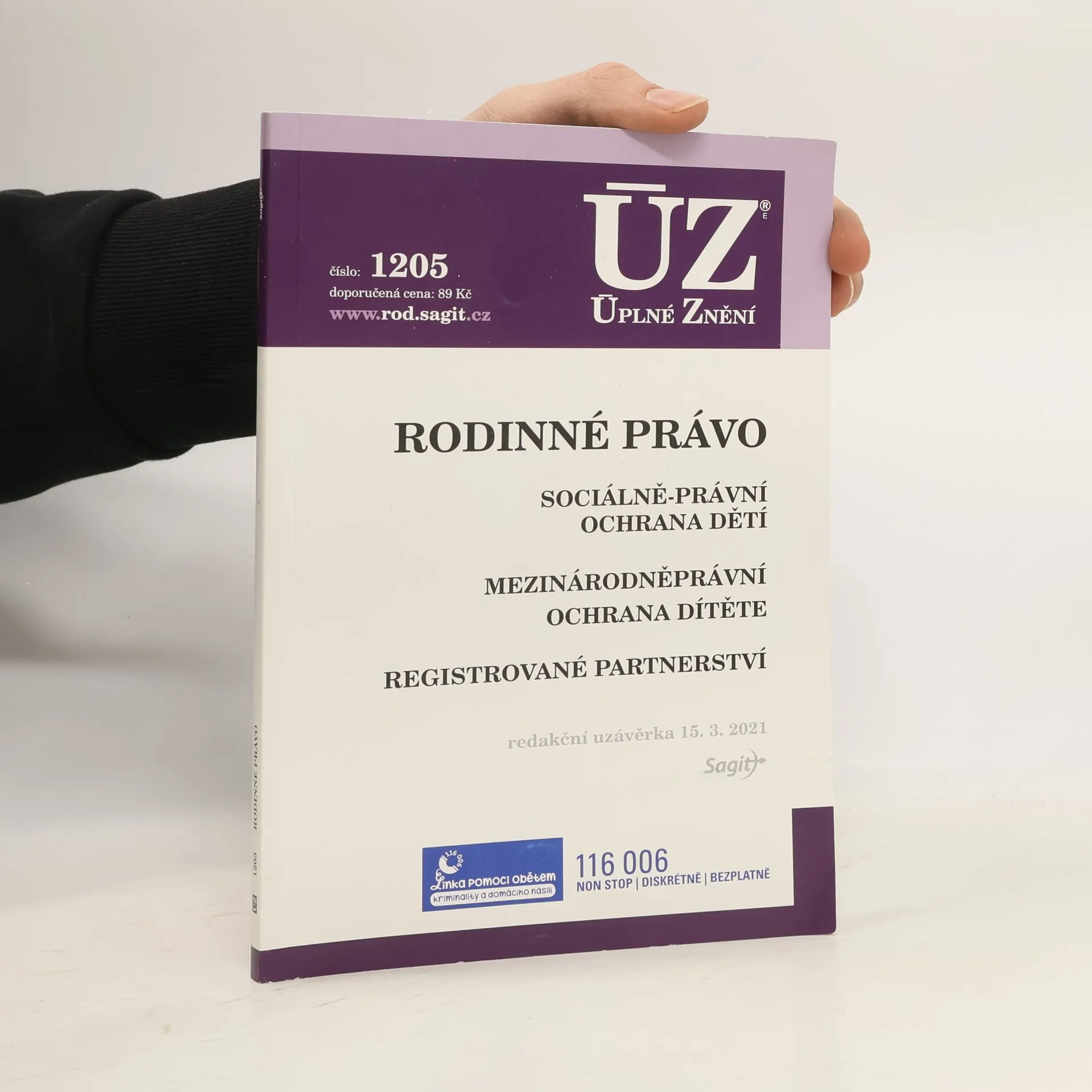 Publikace obsahuje úplné znění části druhé zákona č. 89/2012 Sb., občanského zákoníku, zákon č. 359/1999 Sb., o sociálně-právní ochraně dětí, zákon č. 115/2006 Sb., o registrovaném partnerství, a další předpisy či vybraná ustanovení předpisů spojených tématikou rodinného práva. Redakční uzávěrka 11. 3. 2019.