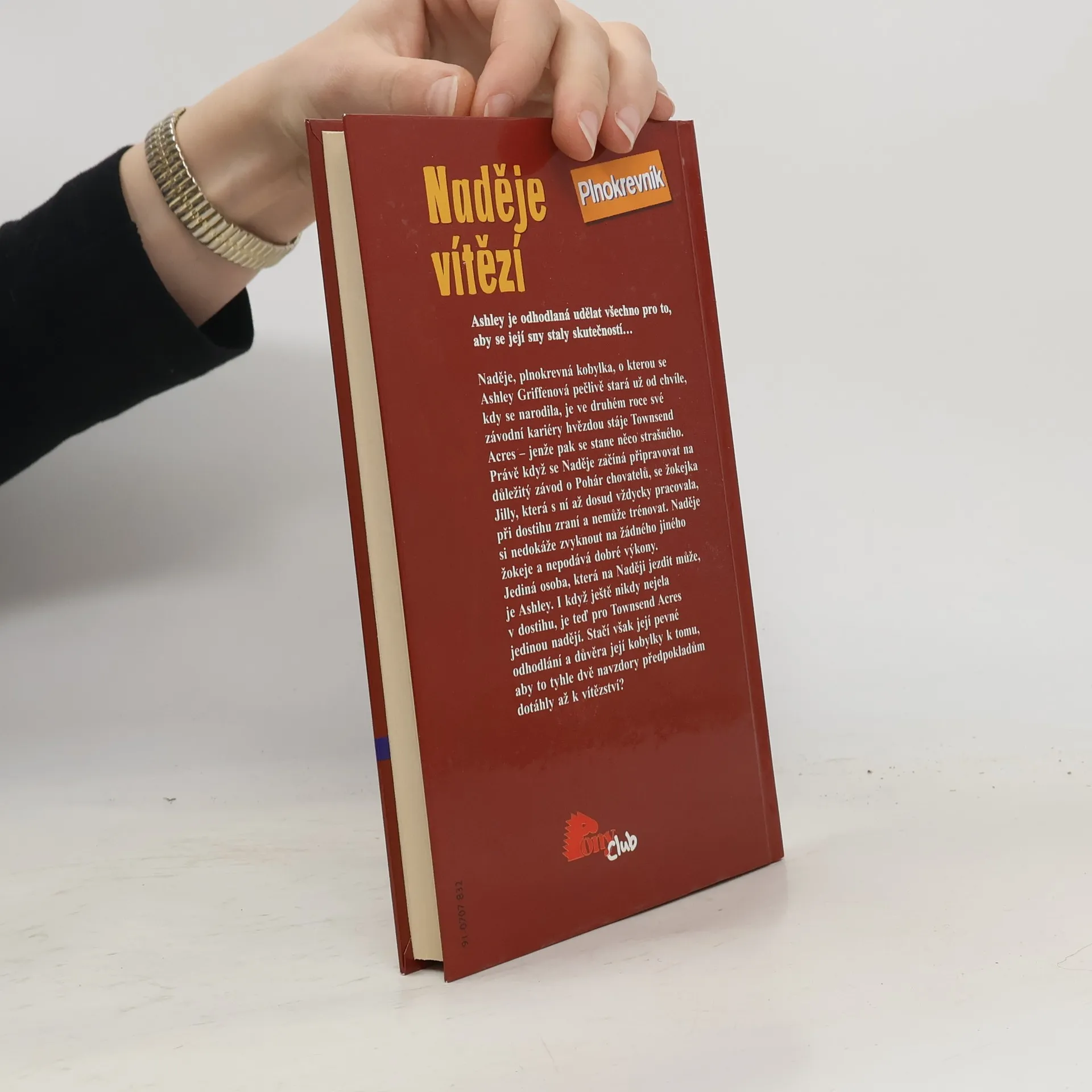 Ashley je odhodlaná udělat všechno pro to, aby se její sny staly skutečností… Naděje, plnokrevná kobylka, o kterou se Ashley Griffenová pečlivě stará už od chvíle, kdy se narodila, je ve druhém roce své závodní kariéry hvězdou stáje Townsend Acres – jenže pak se stane něco strašného. Právě když se Naděje začíná připravovat na důležitý závod o Pohár chovatelů, se žokejka Jilly, která s ní až dosud vždycky pracovala, při dostihu zraní a nemůže trénovat. Naděje si nedokáže zvyknout na žádného jiného žokeje a nepodává dobré výkony. Jediná osoba, která na Naději jezdit může, je Ashley. I když ještě nikdy nejela v dostihu, je teď pro Townsend Acres jedinou nadějí. Stačí však její pevné odhodlání a důvěra její kobylky k tomu, aby to tyhle dvě navzdory předpokladům dotáhly až k vítězství?
