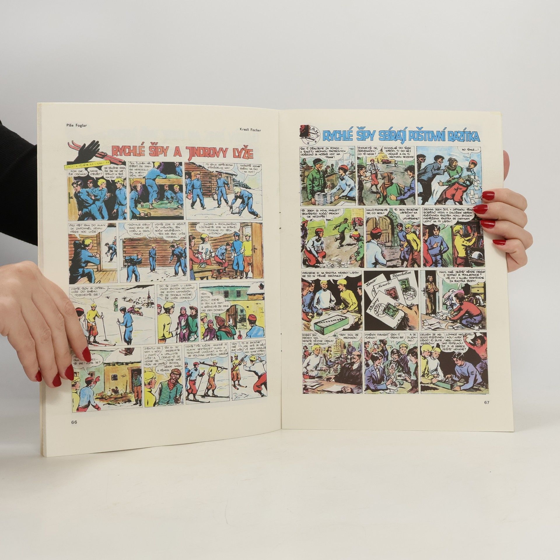 Obrázkový časopis pro chlapce a děvčata (1. ročník) Rychlé Šípy – Jaroslav Foglar, Jan Fisher Rychlé šípy se sázejí Rychlé šípy robí Šlapohyb Rychlé šípy závodí Mirek Dušín je odškodněn Rychlé šípy a Samoletka Rychlonožka v říši snů Rychlé šípy na Černém potoceRychlé šípy ve zbořeném mlýně Rychlé šípy na stopě tuláka Rychlé šípy zachraňují člověka Rychlé šípy modelaří Rychlé šípy a trosečníci Rychlé šípy na výpravě Rychlé šípy zachraňují kamaráda Rychlé šípy na sáňkařské závody Rychlé šípy dovedou prohrávat Rychlé šípy maminkám Rychlé šípy cvičí sebeovládání Rychlé šípy na pramici Rychlé šípy trestají piráty Rychlé šípy nalézají Pátka Rychlé šípy na prázdniny Rychlé šípy ztroskotají Rychlé šípy se předstihují