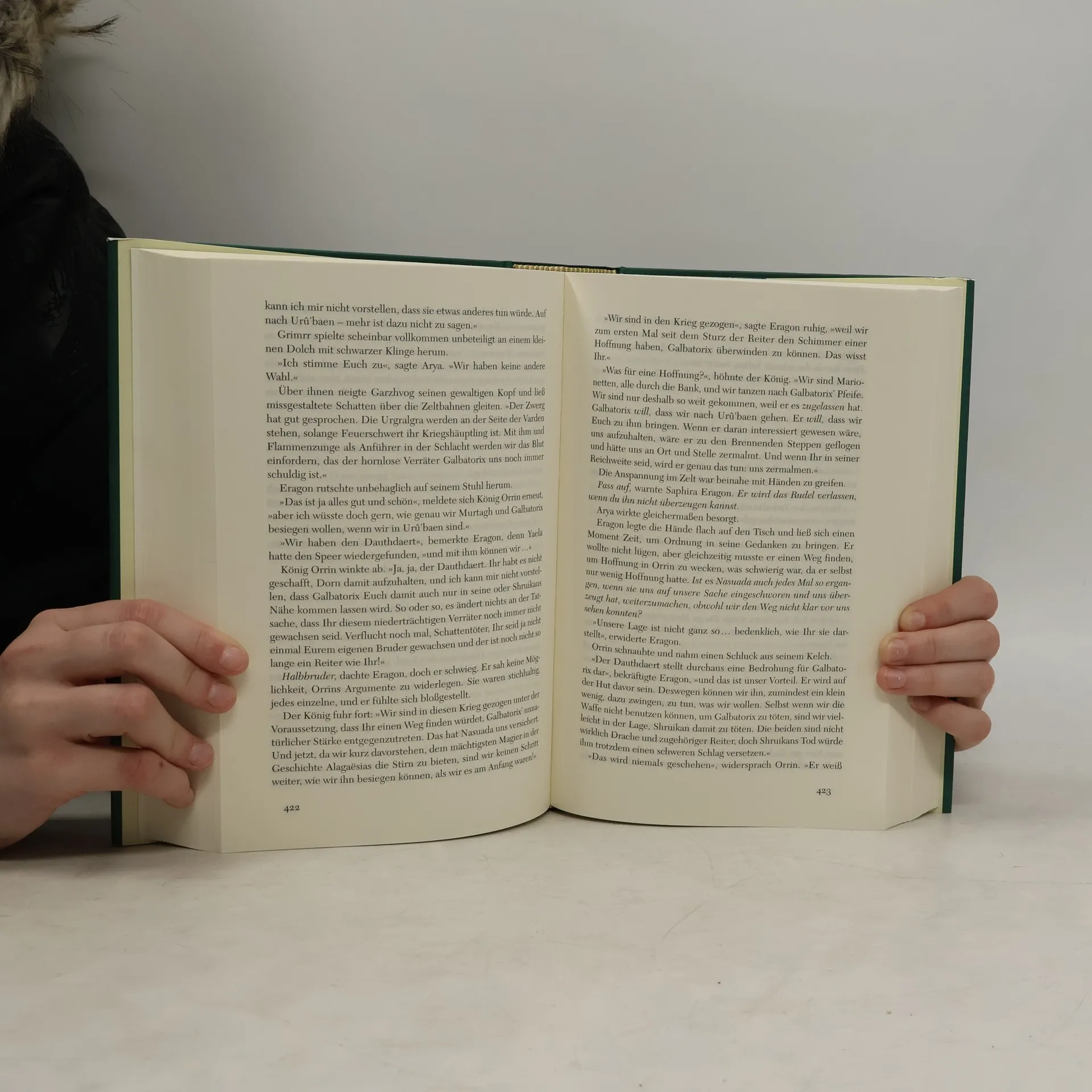 Die Gefährten sind versammelt … Der schwarze Tyrann ist bereit … Der Tag der Entscheidung ist da. Die Völker Alagaësias haben sich zusammengeschlossen und stehen bereit zum alles entscheidenden Kampf gegen Galbatorix, den grausamen Herrscher des Imperiums. Treue Freunde streiten an Eragons Seite, allen voran die wunderschöne Elfe Arya. Die bisher geschlagenen Schlachten haben den Gefährten zwar Siege beschert, aber auch schreckliche Verluste zugefügt. Und Eragon weiß, dass die größte Auseinandersetzung noch vor ihnen liegt – wenn er und Saphira Galbatorix gegenüberstehen. Unbezwingbar scheint der finstere Tyrann, denn er besitzt die Macht zahlloser Drachen, deren Seelenhort er an sich gerissen hat. Werden die Gefährten stark genug sein, gegen eine solche Kraft zu bestehen? Quälende Zweifel nagen an Eragon. Und helfen kann ihm nur eine alte Prophezeiung: Wenn alles verloren erscheint, so heißt es, liegt Rettung im Verlies der Seelen …