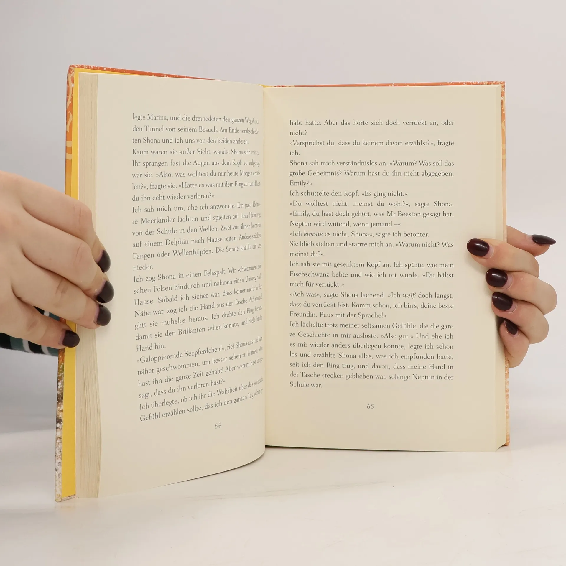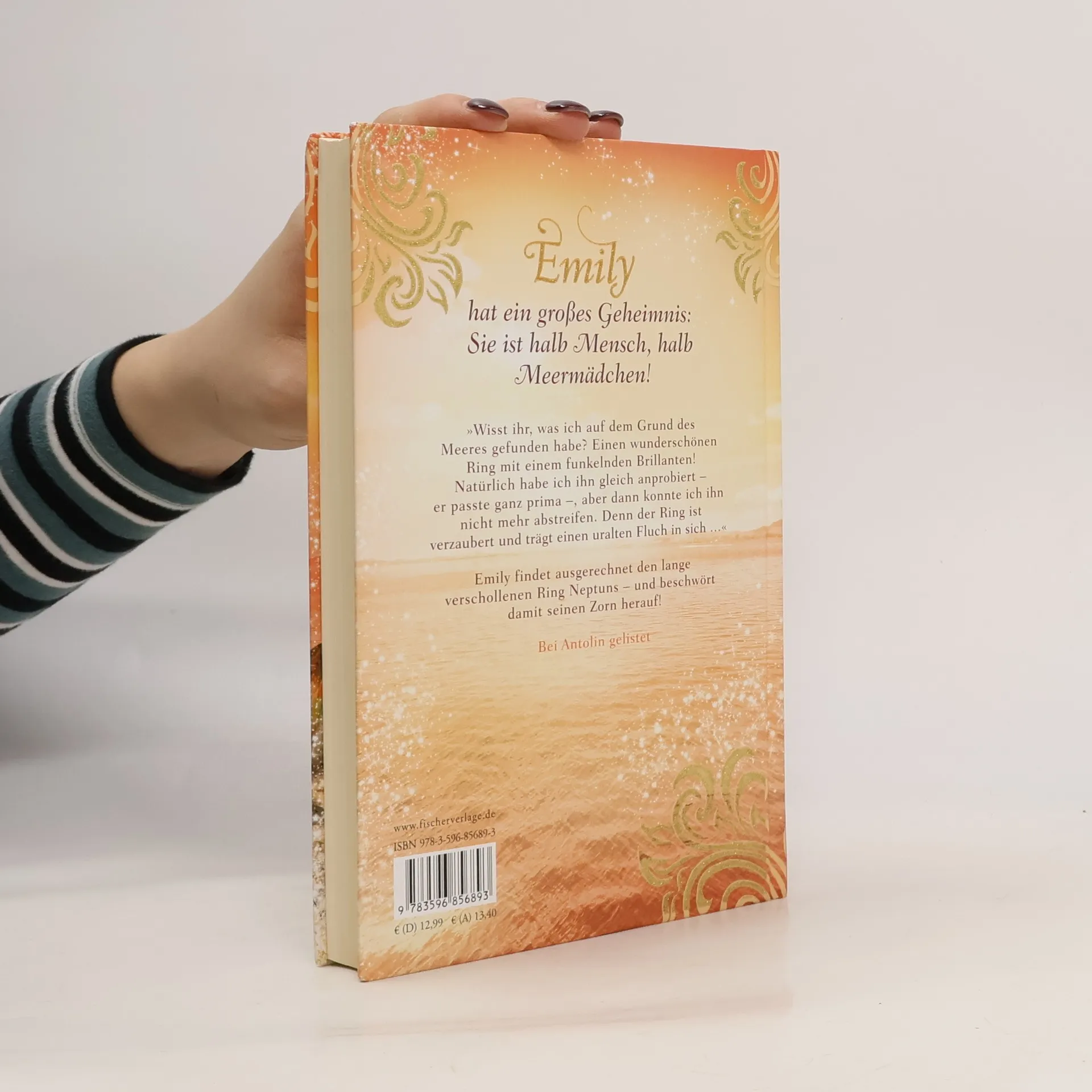 Emily Windsnap hat ein großes Geheimnis: Sie ist halb Mensch, halb Meermädchen! Emily findet bei einem Tauchgang einen wunderschönen Ring mit einem funkelnden Brillanten. Was sie nicht weiß: Der Ring gehört nicht nur Neptun, er ist auch noch verzaubert und trägt einen uralten Fluch in sich. Emily kann ihn nicht mehr abnehmen und muss den Bann bis zum nächsten Vollmond brechen – in drei Tagen! Alle Bände der Emily-Serie: Emily Windsnap - Das Geheimnis (Band 1) Emily Windsnap - Das Abenteuer (Band 2) Emily Windsnap - Die Entdeckung (Band 3) Emily Windsnap - Die Rückkehr (Band 4) Emily Windsnap - Die Reise (Band 5) Emily Windsnap - Die Bestimmung (Band 6)