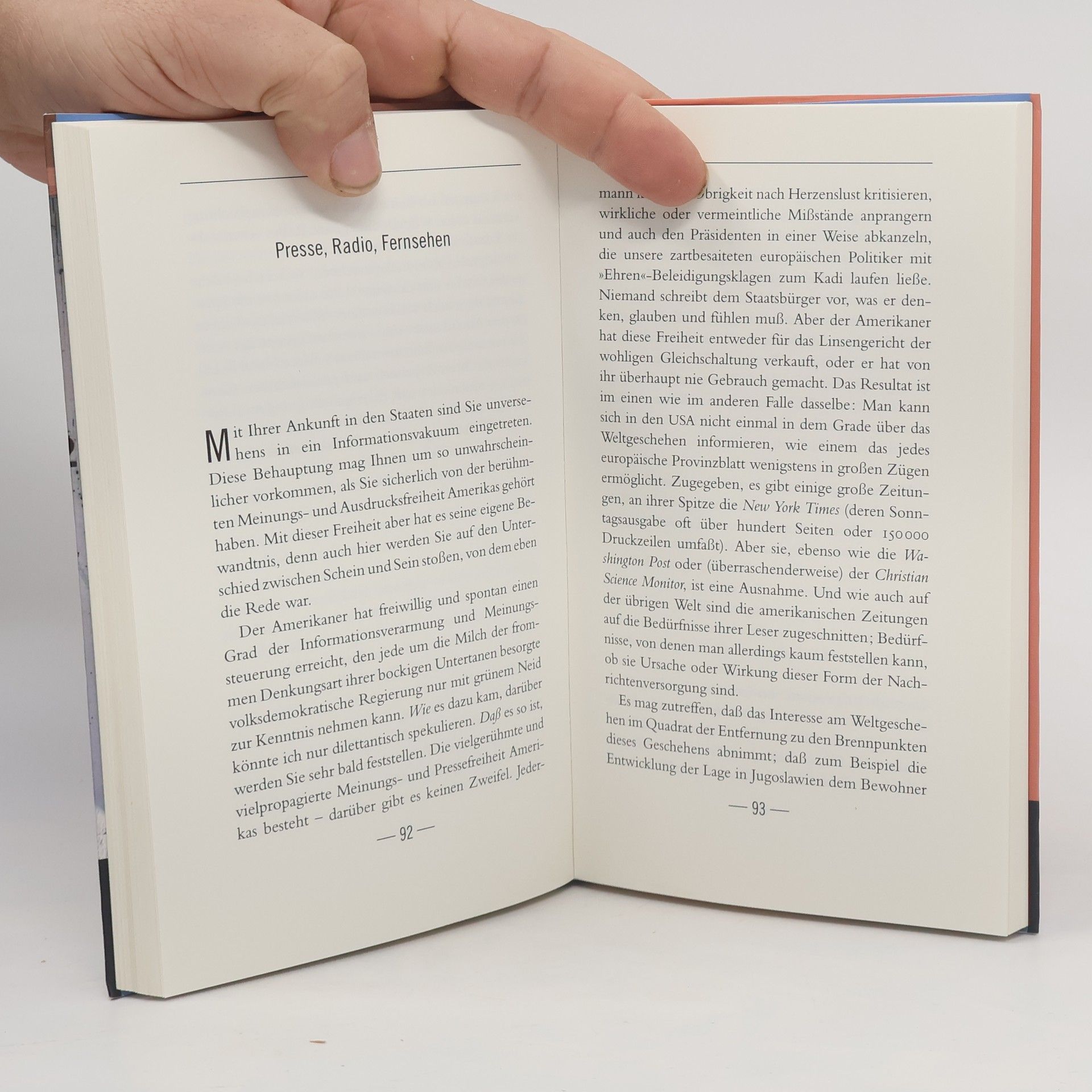 Nehmen Sie nie, wirklich nie die Hand aus der Hosentasche. Allenfalls zur Begrüßung. Rechnen Sie damit, sowohl von links als auch von rechts überholt zu werden. Denken Sie bei Verabredungen stets daran, auf das »a. m.« oder »p. m.« zu achten. Vergessen Sie bloß Ihre Kreditkarte nicht. Seien Sie überhaupt kreditwürdig! Drehen Sie immer die Heizung auf volle Pulle, und schalten Sie gleichzeitig die Klimaanlage ein. Üben Sie buchstabieren. Machen Sie sich mit Yards, Zoll und Feet vertraut. Fragen Sie keinesfalls nach dem Klo – ein Amerikaner geht höchstens mal »to the bath-room«. Seien Sie auch sonst auf einige Tabus gefasst. Und vertrauen Sie blind Paul Watzlawicks Anleitung, die uns Amerika seit 30 Jahren unvergleichlich nahebringt.
