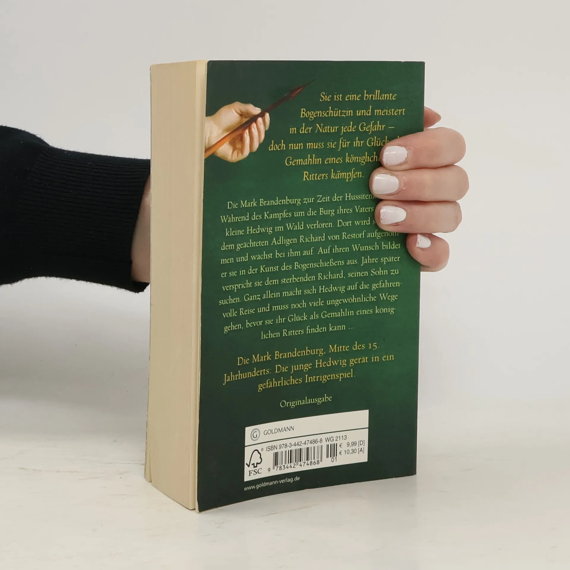Sie liebt einen Ritter. Doch sie will ihre Freiheit niemals aufgeben. Die Mark Brandenburg zur Zeit der Hussitenkriege: Während des Kampfes um die Burg ihres Vaters geht die kleine Hedwig im Wald verloren. Dort wird sie von dem geächteten Adligen Richard von Restorf aufgenommen und wächst bei ihm auf. Auf ihren Wunsch bildet er sie in der Kunst des Bogenschießens aus. Jahre später verspricht sie dem sterbenden Richard, seinen Sohn zu suchen. Ganz allein macht sich Hedwig auf die gefahrenvolle Reise und muss noch viele ungewöhnliche Wege gehen, bevor sie ihr Glück als Gemahlin eines königlichen Ritters finden kann ...