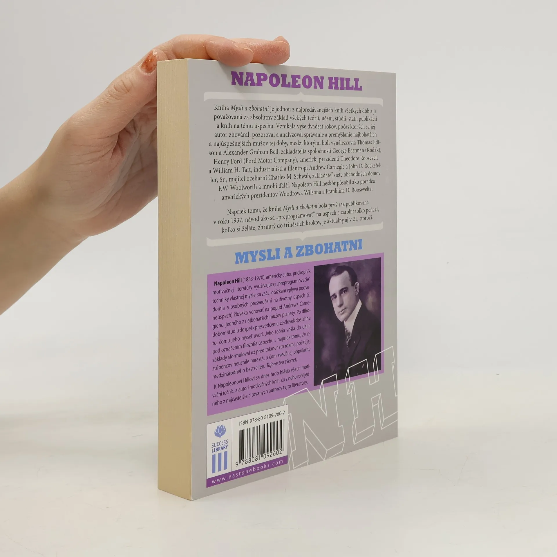 Kniha Mysli a zbohatni je jednou z najpredávanejších kníh všetkých dôb a je považovaná za absolútny základ všekých teórií, učení, štúdií, statí, publikácií a kníh na tému úspechu. Vznikala vyše dvadsať rokov, počas ktorých sa jej autor zhováral, pozoroval a analyzoval správanie a premýšľanie najbohatších a najúspešnejších mužov tej doby, medzi ktorými boli vynálezcovia Thomas Edison a Alexander Graham Bell, zakladatelia spoločností George Eastman (Kodak), Henry Ford (Ford Motor Company), americkí prezidenti Theodore Roosevelt a William H. Taft, industrialisti a filantropi Andrew Carneg ie a John D. Rockefe ller, Sr., majiteľ oceliarní Charles M. Schwab, zakladateľ siete obchodných domovF.W. Woolworth a mnohí ďalší. Napoleon Hill neskôr pôsobil ako poradca amerických prezidentov Woodrowa Wilsona a Franklina D. Roosevelta. Napriek tomu, že kniha Mysli a zbohatni bola prvý raz publikovaná v roku 1937, návod, ako sa „preprogramovať“ na úspech a zarobiť toľko peňazí, koľko si želáte, zhrnutý do trinástich krokov, je aktuálny aj v 21. storočí.