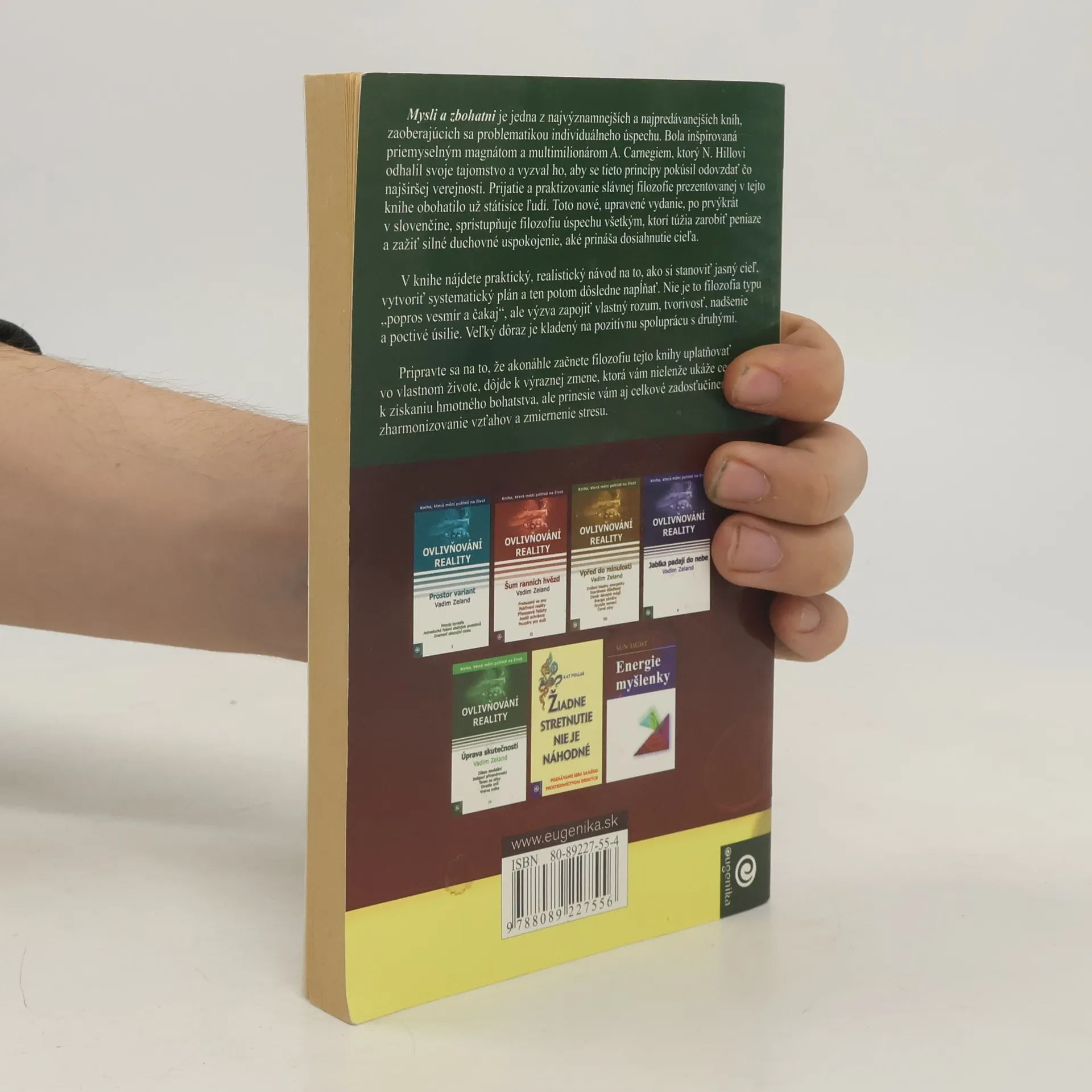Kniha Mysli a zbohatni je jednou z najpredávanejších kníh všetkých dôb a je považovaná za absolútny základ všekých teórií, učení, štúdií, statí, publikácií a kníh na tému úspechu. Vznikala vyše dvadsať rokov, počas ktorých sa jej autor zhováral, pozoroval a analyzoval správanie a premýšľanie najbohatších a najúspešnejších mužov tej doby, medzi ktorými boli vynálezcovia Thomas Edison a Alexander Graham Bell, zakladatelia spoločností George Eastman (Kodak), Henry Ford (Ford Motor Company), americkí prezidenti Theodore Roosevelt a William H. Taft, industrialisti a filantropi Andrew Carneg ie a John D. Rockefe ller, Sr., majiteľ oceliarní Charles M. Schwab, zakladateľ siete obchodných domovF.W. Woolworth a mnohí ďalší. Napoleon Hill neskôr pôsobil ako poradca amerických prezidentov Woodrowa Wilsona a Franklina D. Roosevelta. Napriek tomu, že kniha Mysli a zbohatni bola prvý raz publikovaná v roku 1937, návod, ako sa „preprogramovať“ na úspech a zarobiť toľko peňazí, koľko si želáte, zhrnutý do trinástich krokov, je aktuálny aj v 21. storočí.