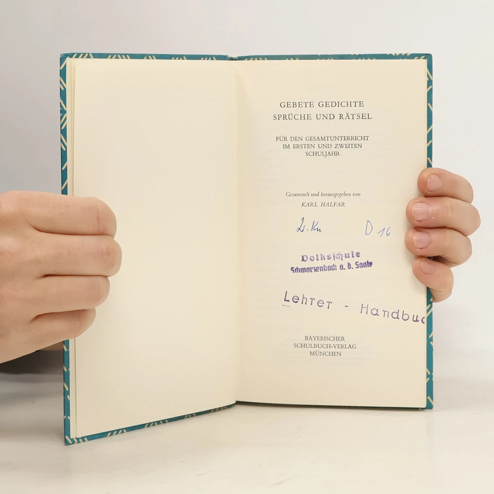 Gebete, Gedichte, Sprüche und Rätsel für den Gesamtunterricht im ersten und zweiten Schuljahr, Karl Halfar