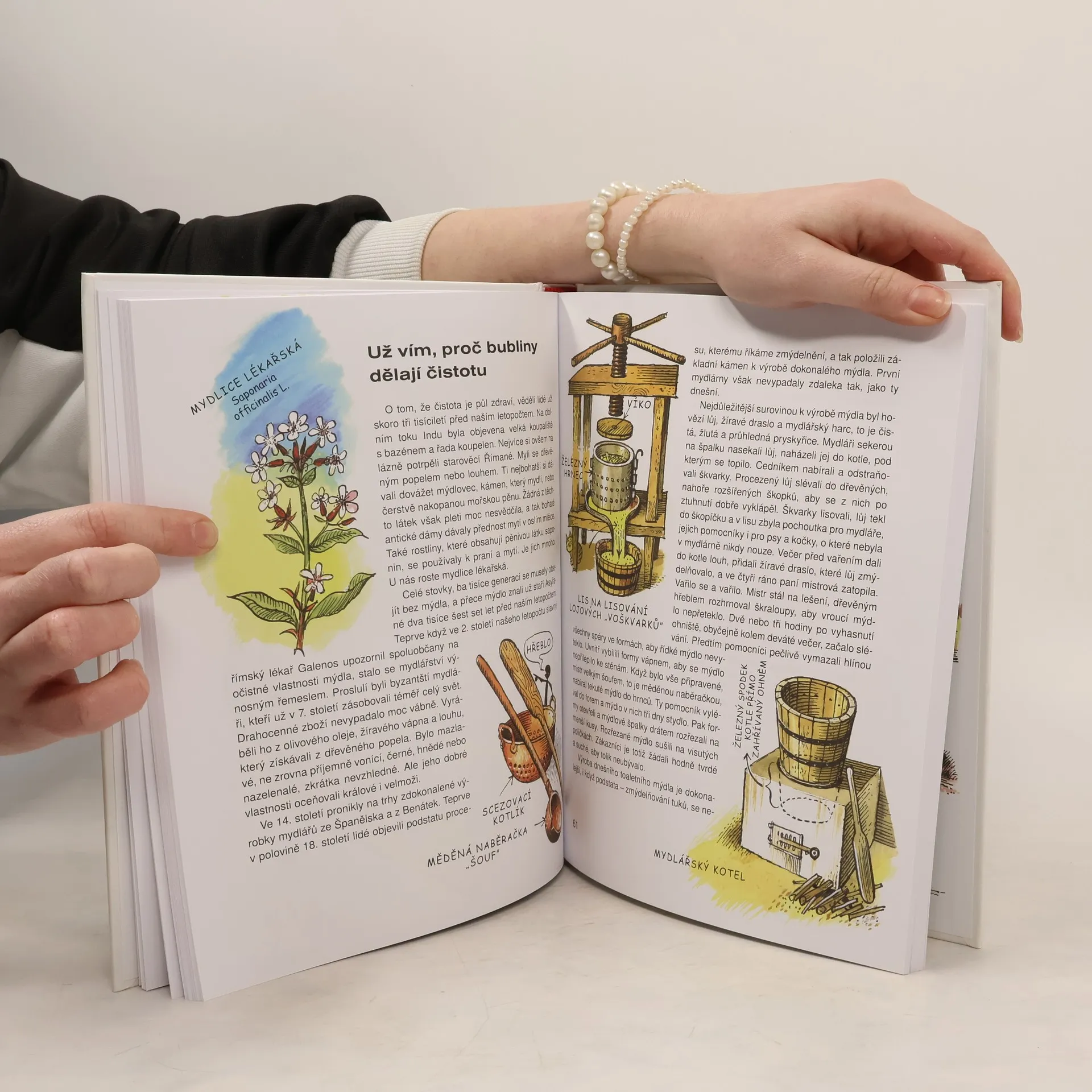 Víte, jak se dělá čokoláda a jak se vyrábí cukr? A proč se sýr jmenuje camembert, či hermelín? Z čeho jíme, pijeme a kde bydlíme? Kdo neví, hned se dozví! A nejen to – i jak vzniká porcelán, mýdlo, látka, nářadí, nábytek, kniha, film a spousta dalších předmětů kolem nás. Poznáte výrobky a jejich výrobní procesy v dobách dávných i nedávných. Kniha je plná ilustrací a vypráví o běžných věcech, které mnohdy bereme denně do ruky.