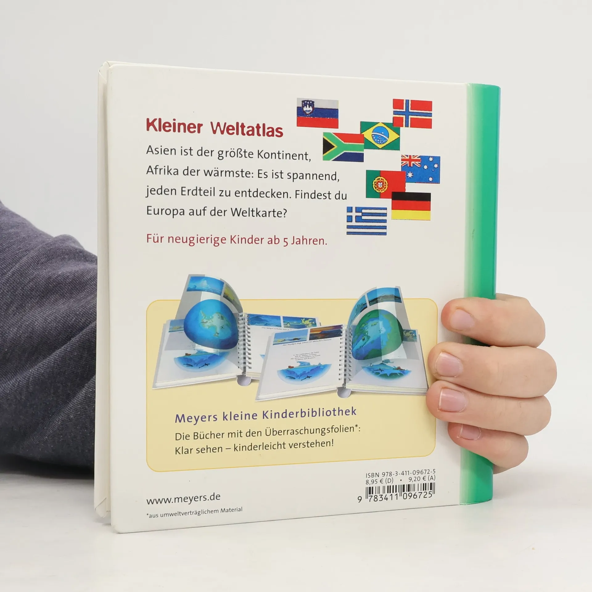 Durch spannende Effekte vermittelt die Bilderbuchreihe „Meyers kleine Kinderbibliothek“ erstes Sachwissen für Kinder ab 3 Jahren. Transparente Folien zeigen beim Umblättern das Innenleben von Dingen, machen Verdecktes sichtbar oder veranschaulichen Veränderungen. In diesem Band lernen die Kleinsten spielerisch, dass die Erde rund ist und sich um die Sonne dreht. Außerdem wird erklärt, was ein Globus ist, wie die Kontinente entstanden sind, wie es im Inneren der Erde aussieht oder aus welchen Kontinenten und Ländern die Erde besteht.