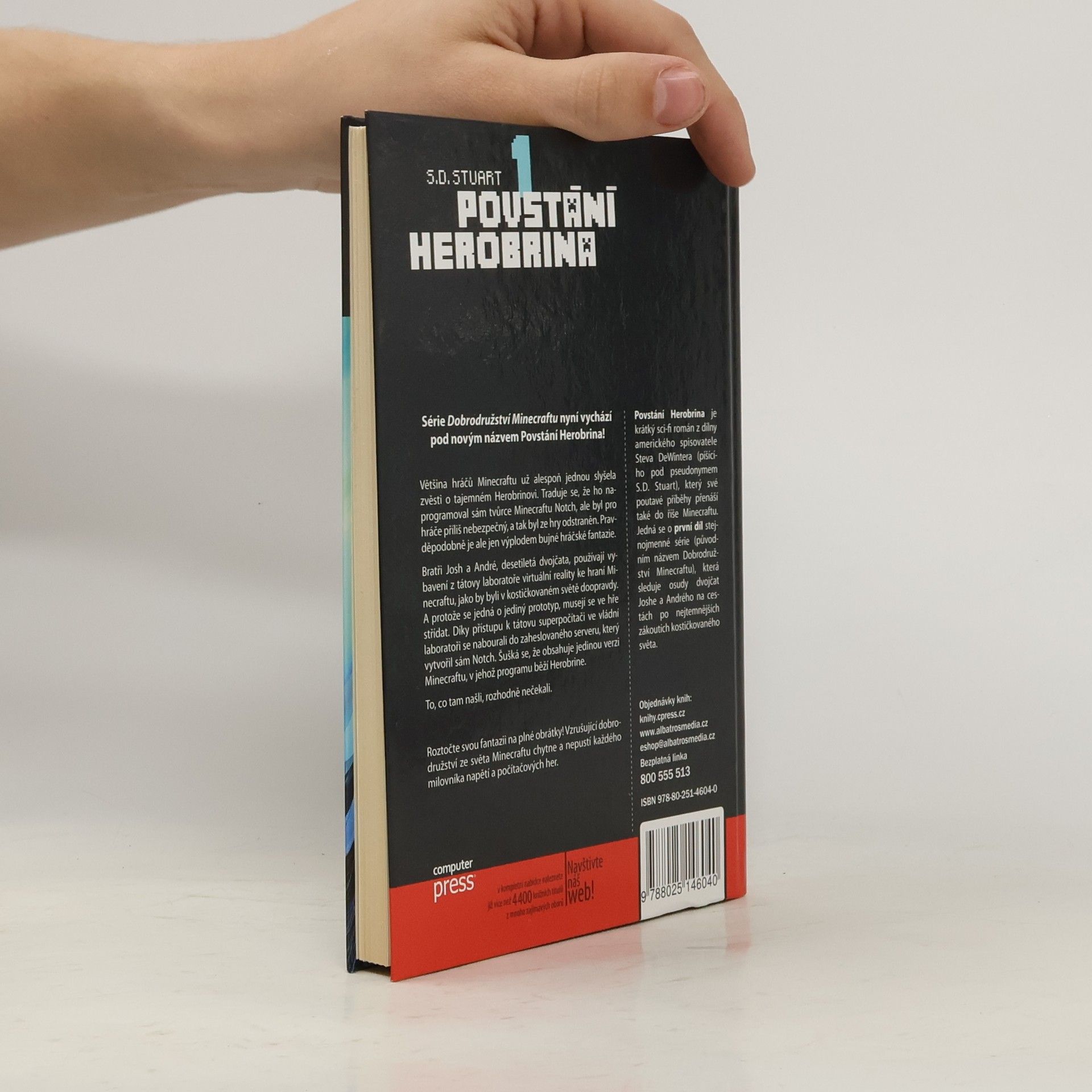 Většina hráčů Minecraftu už alespoň jednou slyšela zvěsti o tajemném Herobrinovi. Traduje se, že ho naprogramoval sám tvůrce Minecraftu Notch, ale byl pro hráče příliš nebezpečný, a tak byl ze hry odstraněn. Pravděpodobně je ale jen výplodem bujné hráčské fantazie. Bratři Josh a André, desetiletá dvojčata, používají vybavení z tátovy laboratoře virtuální reality ke hraní Minecraftu, jako by byli v kostičkovaném světě doopravdy. A protože se jedná o jediný prototyp, musejí se ve hře střídat. Díky přístupu k tátovu superpočítači ve vládní laboratoři se nabourali do zaheslovaného serveru, který vytvořil sám Notch. Šušká se, že obsahuje jedinou verzi Minecraftu, v jehož programu běží Herobrine. To, co tam našli, rozhodně nečekali. Roztočte svou fantazii na plné obrátky! Vzrušující dobrodružství ze světa Minecraftu chytne a nepustí každého milovníka napětí a počítačových her. Povstání Herobrina je krátký sci-fi román z dílny amerického spisovatele Steva DeWintera (píšícího pod pseudonymem S.D. Stuart), který své poutavé příběhy přenáší i do říše Minecraftu. Jedná se o první díl série Dobrodružství Minecraftu, která sleduje osudy dvojčat Joshe a Andrého na cestách po nejtemnějších zákoutích kostičkovaného světa.