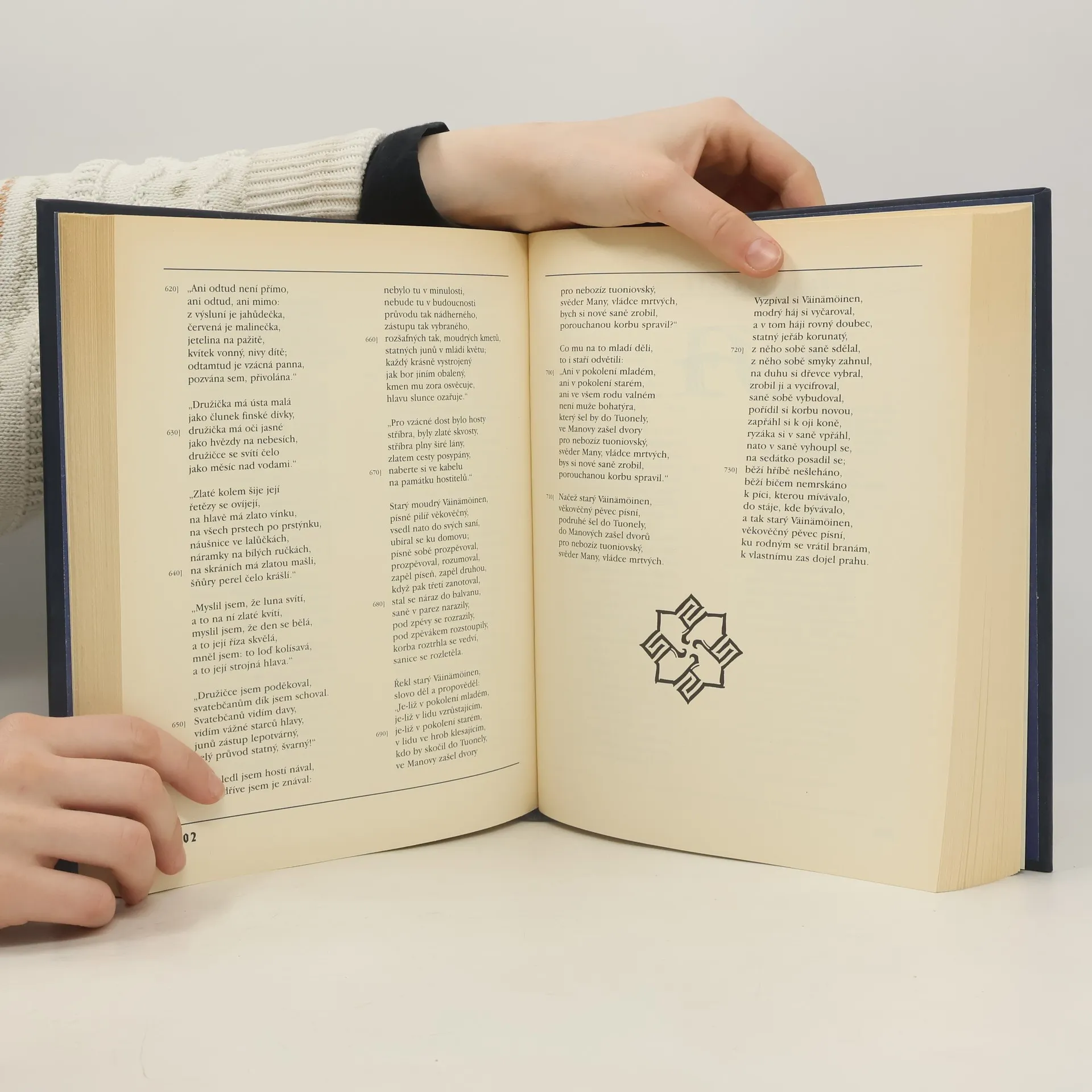 Kalevala je karelo-finský národní epos sestavený Eliasem Lönnrotem z ústní slovesnosti Finů a Karelů. Dílo obsahující 22 795 veršů je rozděleno do padesáti „run“ čili zpěvů. Epos shrnuje v sérii příběhů tří bohatýrů, Lemminkäinena, Väinämöinena a Ilmarinena, potomků mýtického Kalevy, celou finskou mytologii. 4. vydání. Přeložil, úvod a vysvětlivky napsal Josef Holeček; textově připravil, doslov a ediční poznámku napsal Jan Petr Velkoborský, Slovníček sestavila Jelena Holečková-Dolanská; iniciálami vyzdobil, vazbu a grafickou úpravu navrhl Karel Aubrecht. Terminologický slovník.