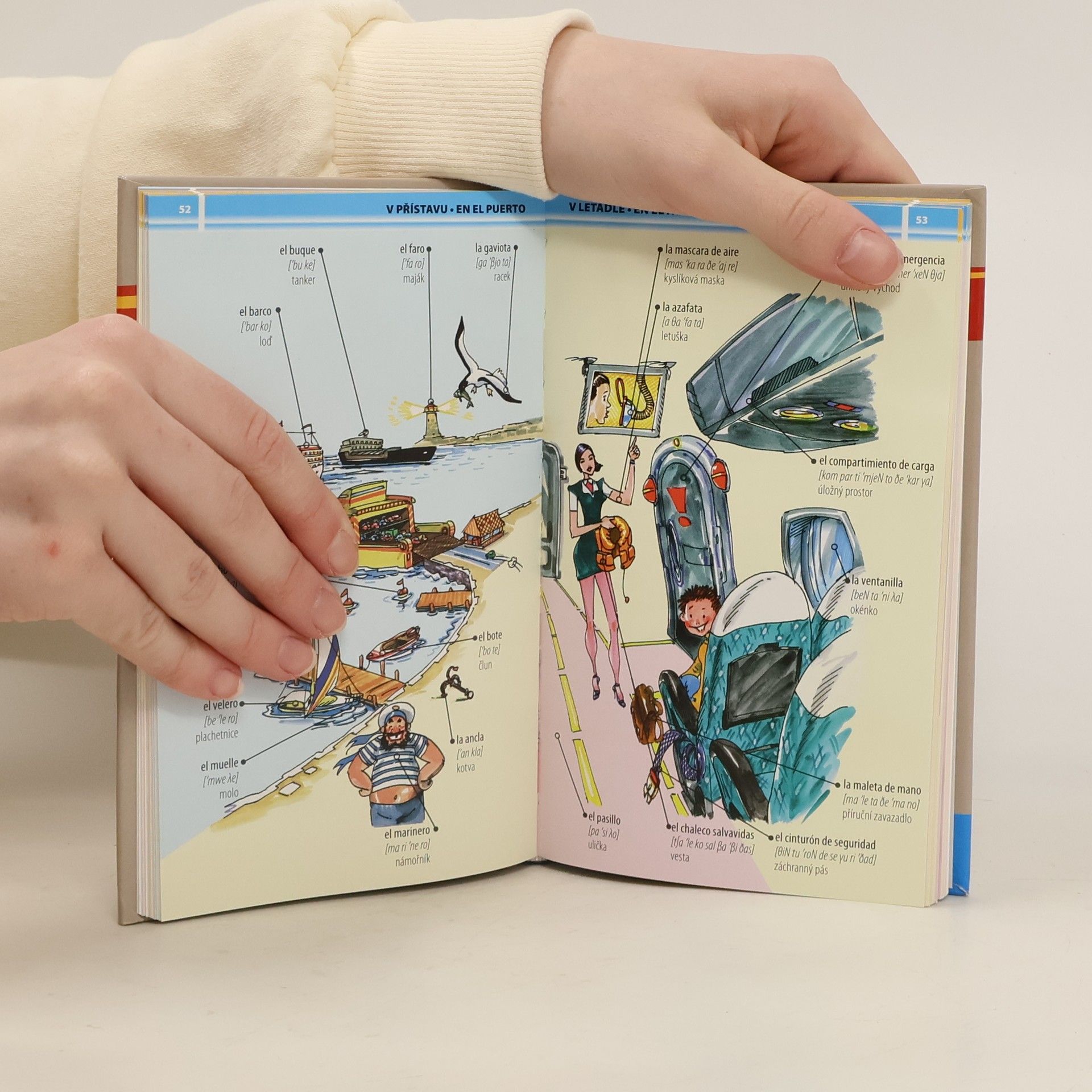 Knížka se stane dobrým pomocníkem při učení a procvičování španělškých slovíček. Na veselých obrázcích, jež znázorňují běžné životní situace, najdete názvy věcí, se kterými se denně setkáváte. Týkají se cestování, zábavy, vybavení bytu, školy, sportu ad. . Každý tematický celek je pak doplněn jednoduchými frázemi ze života.Na konci se nachází souhrnný česko-ruský slovník se všemi slovy z knížky.