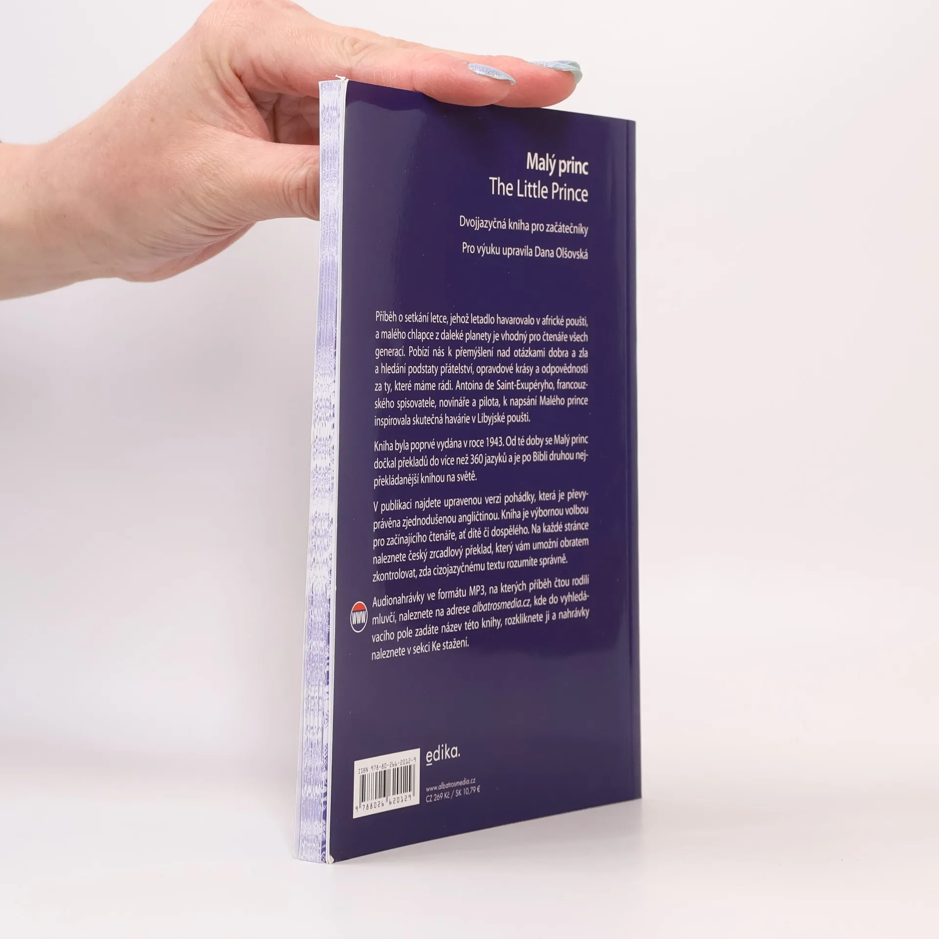Příběh o setkání letce, jehož letadlo havarovalo v poušti, a malého chlapce z daleké planety je vhodný pro čtenáře všech generací. Pobízí k přemýšlení nad otázkami dobra a zla a hledání podstaty přátelství a odpovědnosti za ty, které máme rádi. V publikaci najdete upravenou verzi pohádky, která je převyprávěna zjednodušenou angličtinou. Kniha je výbornou volbou pro začínajícího čtenáře, ať dítě či dospělého. Audionahrávka ve formátu MP3, na které příběh vypráví rodilý mluvčí, je zdarma ke stažení na webu.