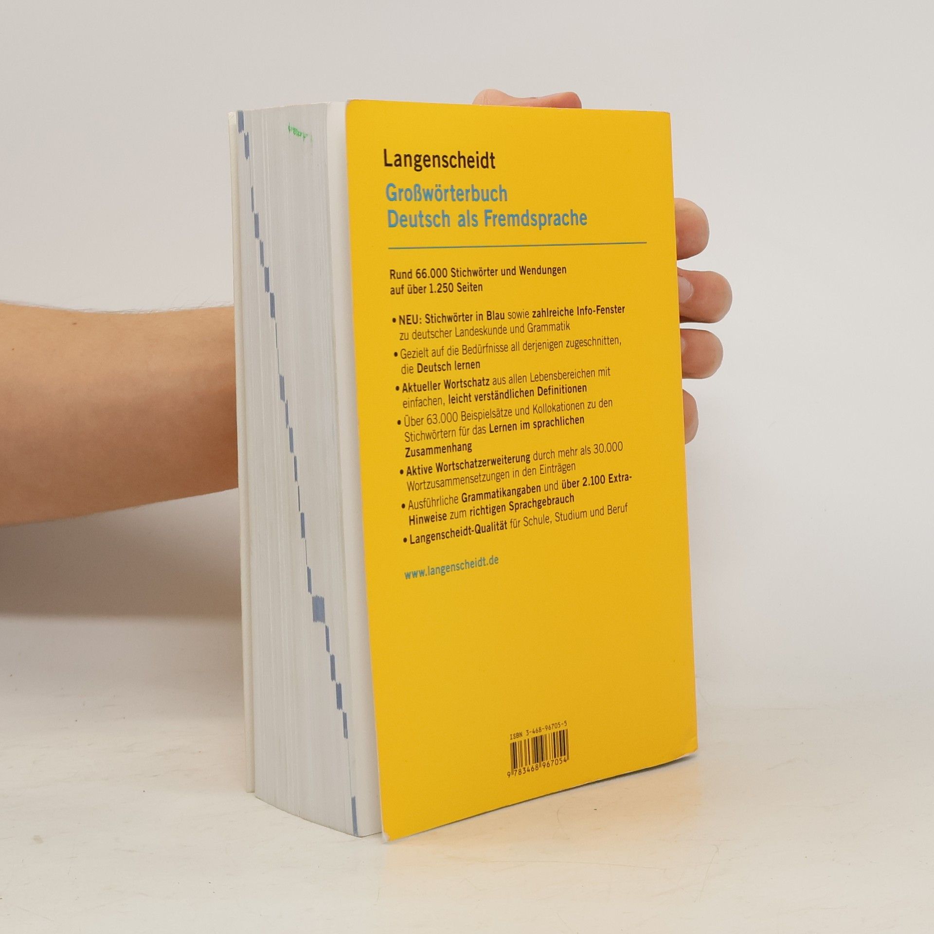 Das bewährte Lernerwörterbuch für alle, die Deutsch lernen. Mit rund 66.000 aktuellen Stichwörtern und Wendungen, zahlreichen Info-Fenstern zu deutscher Landeskunde und Grammatik sowie Stichwörtern in Blau für optimale Übersichtlichkeit. Bewährt: die Einbettung der Stichwörter in ihren sprachlichen Kontext und hilfreiche Zusatzinformation für den korrekten Sprachgebrauch