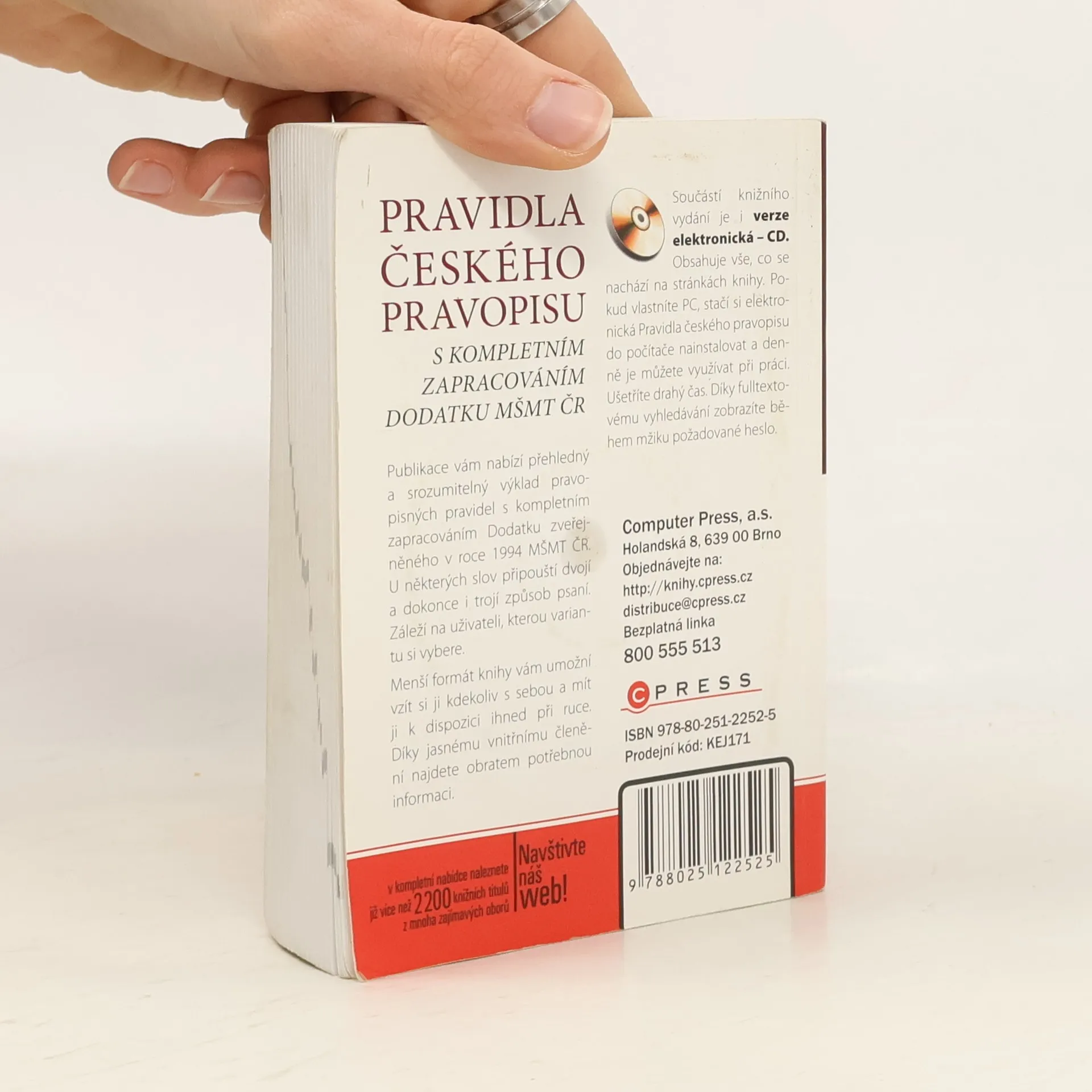 Publikace vám nabízí přehledný a srozumitelný výklad pravopisných pravidel s kompletním zapracováním Dodatku zveřejněného v roce 1994 MŠMT ČR. U některých slov připouští dvojí a dokonce i trojí způsob psaní. Záleží na uživateli, kterou variantu si vybere. Menší formát knihy vám umožní vzít si ji kdekoliv s sebou a mít ji k dispozici ihned při ruce. Díky jasnému vnitřnímu členění najdete obratem potřebnou informaci. Obsahuje vše, co se nachází na stránkách knihy. Pokud vlastníte PC, stačí si elektronická Pravidla českého pravopisu do počítače nainstalovat a denně je můžete využívat při práci. Ušetříte drahý čas. Díky fulltextovému vyhledávání zobrazíte během mžiku požadované heslo.