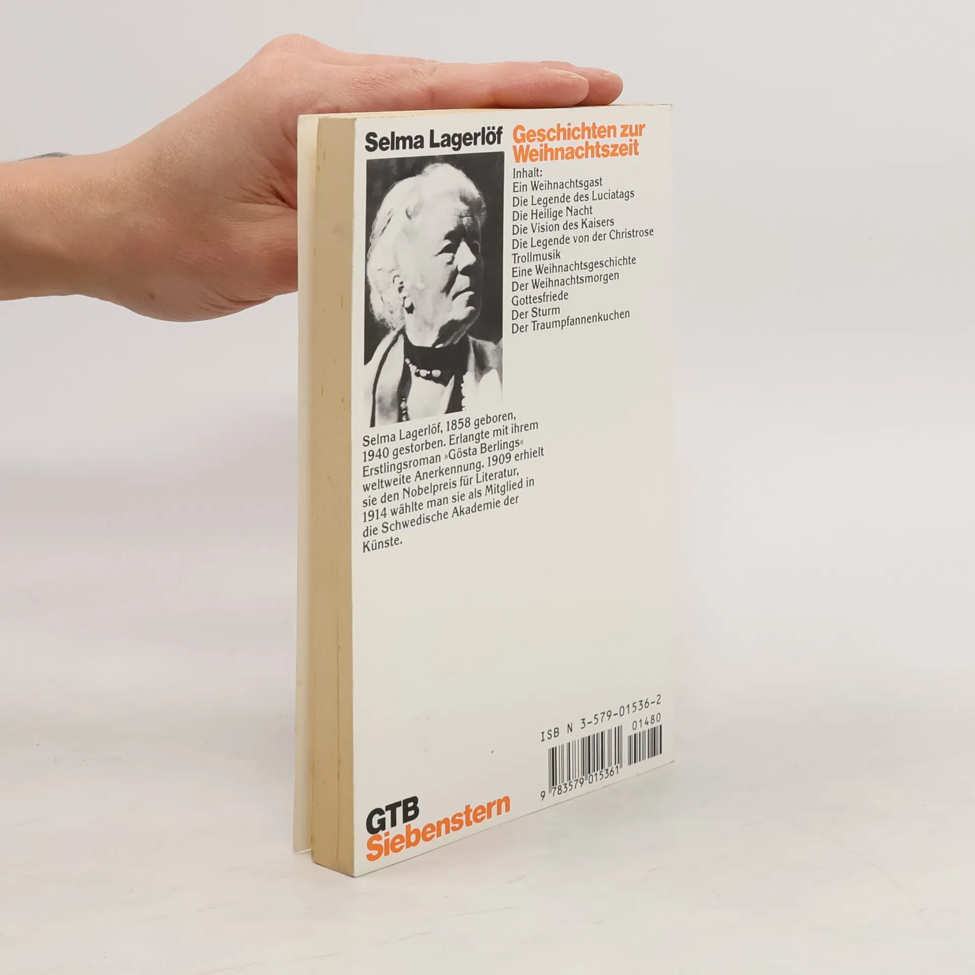 Inhalt: Ein Weihnachtsgast. Die Legende des Luciatags. Die Heilige Nacht. Die Vision des Kaisers. Die Legende von der Christrose. Trollmusik. Eine Weihnachtsgeschichte. Der Weihnachtsmorgen. Gottesfriede. Der Sturm. Der Traumpfannenkuchen. Selma Lagerlöf 1858 geboren, 1940 gestorben. Erlangte mit ihrem Erstlingsroman „Gösta Berlings“ weltweite Anerkennung. 1909 erhielt sie den Nobelpreis für Literatur, 1914 wählte man sie als Mitglied in die Schwedische Akademie der Künste.
