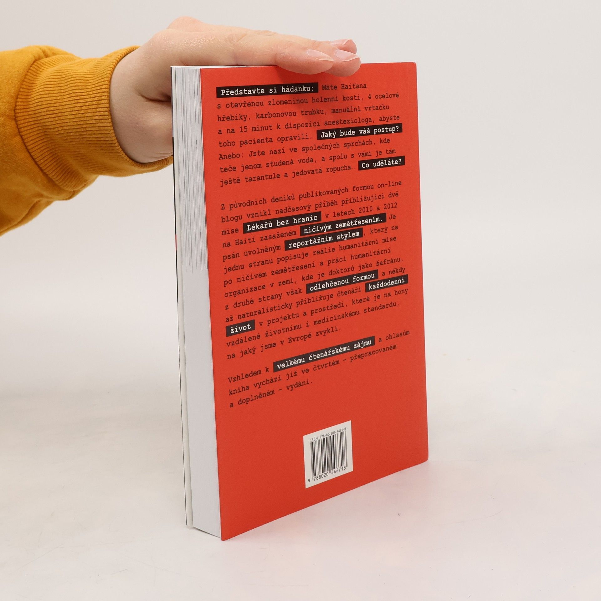 Pět měsíců českého chirurga s Lékaři bez hranic. V lednu 2010 zasáhlo Haiti ničivé zemětřesení, které připravilo o život statisíce lidí a postihlo celkově miliony obyvatel této nádherné karibské země. Mezinárodní humanitární organizace Lékaři bez hranic zasahovala na místě již od prvních hodin a během pěti měsíců po katastrofě ošetřila téměř 200 tisíc pacientů a provedla více než 11 tisíc operací. Při vší úctě k této organizaci a vážnosti situace není tento příběh výčtem suchých a většinou tragických faktů. Není ani oficiálním stanoviskem Lékařů bez hranic. Je to osobní příběh českého chirurga, který se k Lékařům bez hranic připojil a prožil s nimi své první měsíce spolupráce na Haiti v roce 2010 a 2012. Formou původně blogových příspěvků, které vznikaly bezprostředně každý den přímo na misi, reportážním způsobem s prvky černého humoru, naturalismu, nadsázky a také určité míry vulgarity autor popisuje svá pracovní i volnočasová pozorování. Vzhledem k velkému zájmu nyní kniha vychází ve čtvrtém a přepracovaném vydání.
