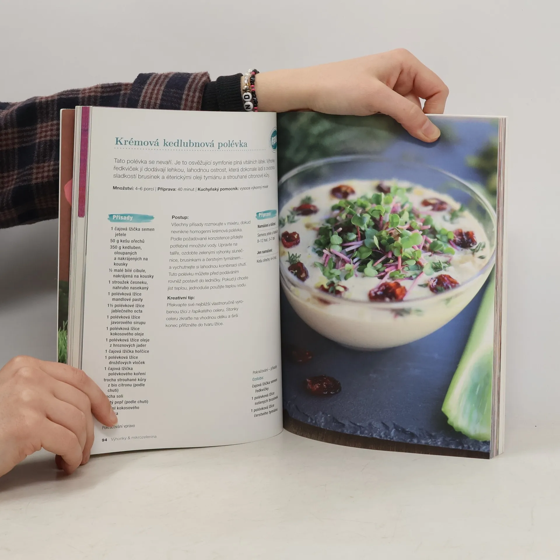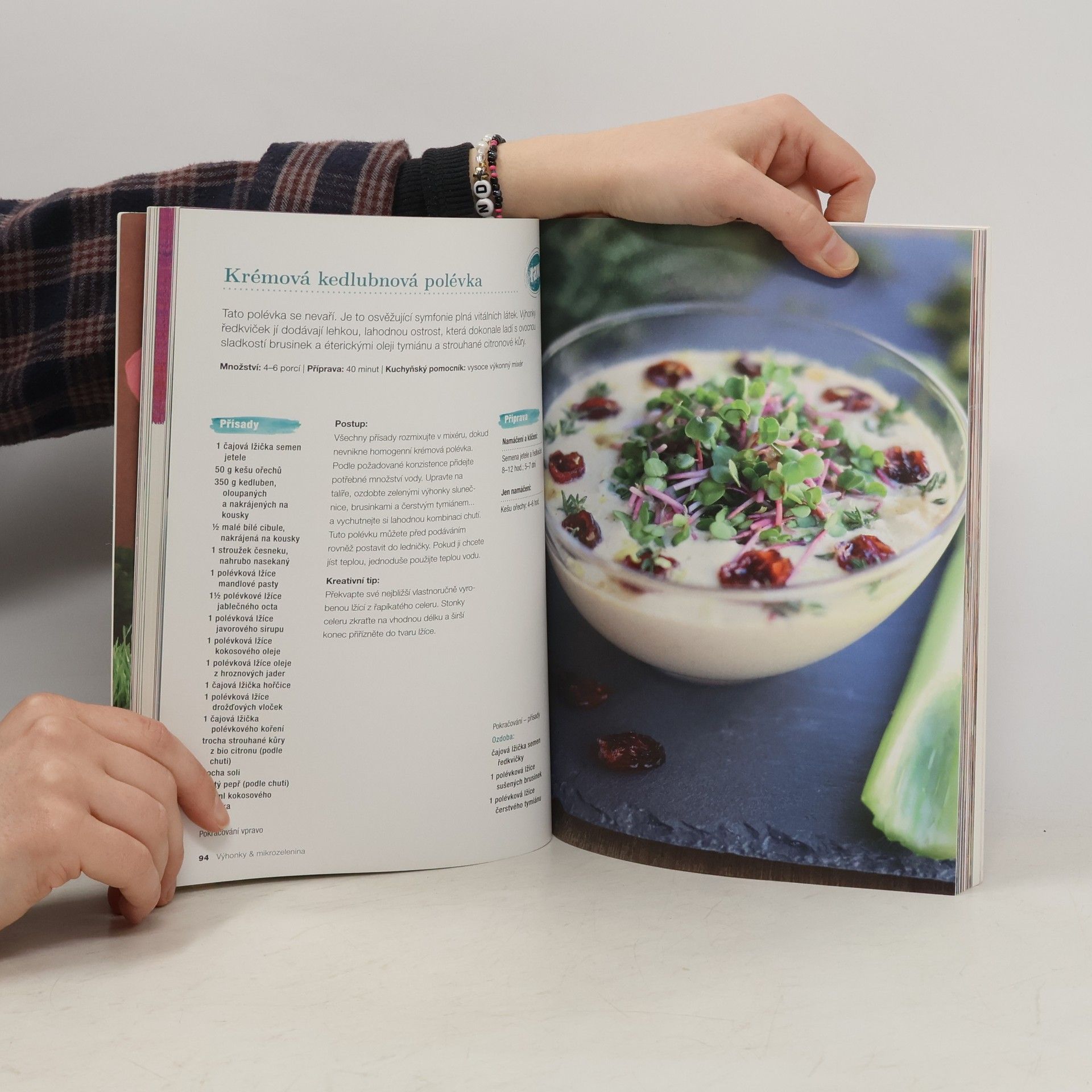 Pro pěstování výhonků a mikrozeleniny vůbec a jejich používání v kuchyni hovoří řada pozitiv. Obsahují vitamíny, bílkoviny, minerály a spoustu dalších prospěšných látek, které náš organismus velmi ocení, zvláště v zimě. Tak proč se do jejich pěstování sami nepustit, zvláště když je to ekonomicky výhodné? Poradíme vám, jak na to, abyste už po pár dnech měli po ruce chutný potravinový doplněk, vhodný do salátů, polévek, na sendviče, do müsli nebo do koktejlů. Úvodem jsou představeny všechny rostliny, které lze doma pěstovat třeba na parapetu, autorka dokonce uvádí u každé, za kolik hodin či dní vyklíčí a způsob jejich ošetřování. Jako bonus platí, že veškerá tato mikrozelenina bude bez hnojiv a chemických postřiků… Podstatnou část knihy pak vyplňují chutné recepty využívající mikrozeleninu, doprovázené krásnými velkými ?fotografiemi, které k vyzkoušení receptů svádějí přímo ďábelsky!