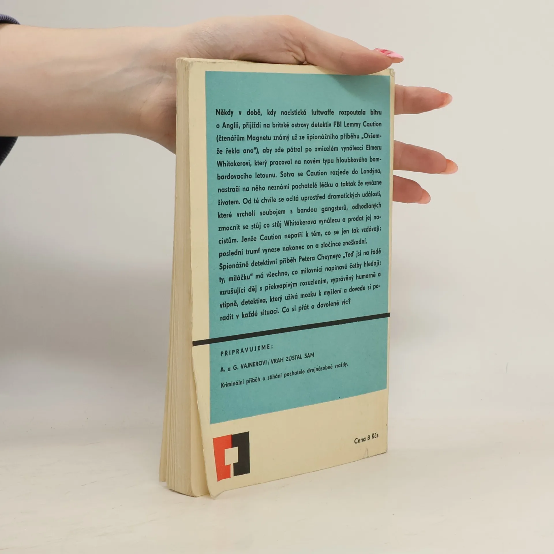 Detektivní román se špionážní zápletkou líčí pátrání po zmizelém vynálezci nového typu bombardéru. Detektiv FBI Lemmy Caution přijíždí do Londýna, aby zde pátral po zmizelém vynálezci. Pachatelé na něj nastraží léčku a od té chvíle se dostává do boje s bandou gangsterů, odhodlaných zmocnit se vynálezu letadla a prodat ho nacistům. Magnet 8/71.