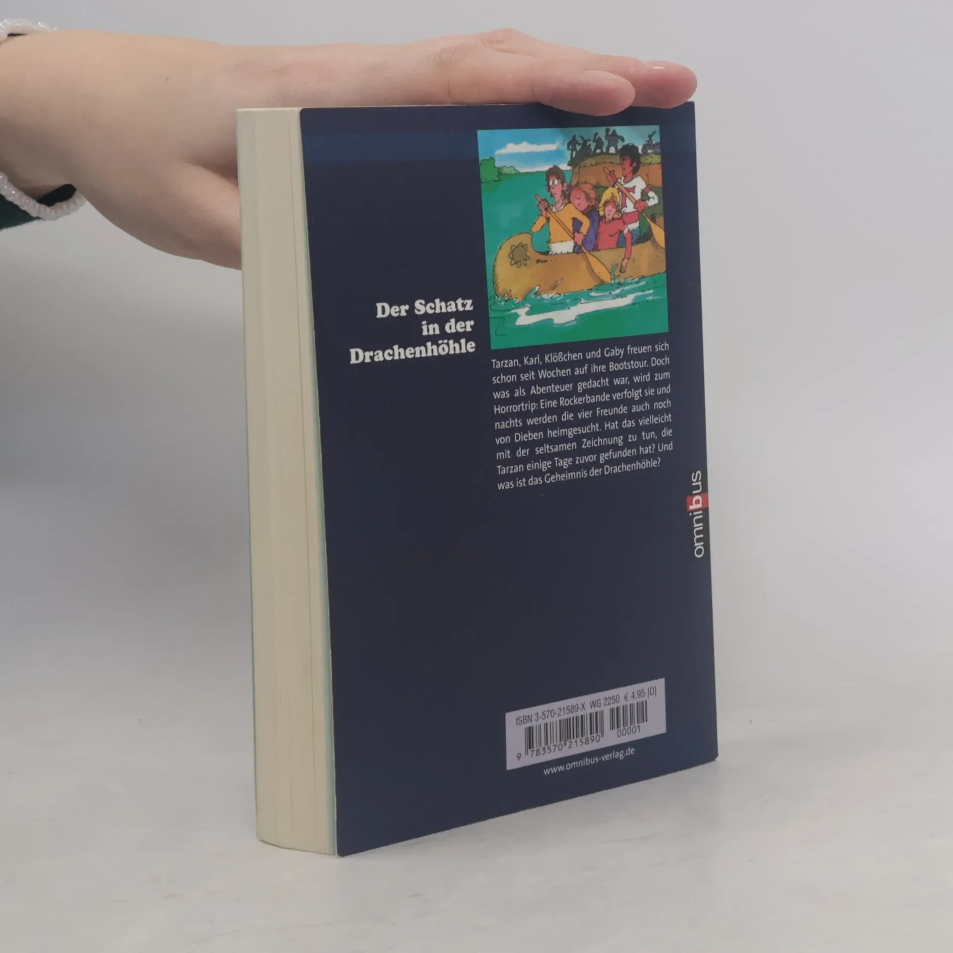 Es fängt mit einem Zufall an. Tarzan findet in einer Mülltonne eine Zeichnung mit Symbolen, die er nicht deuten kann. Schon am nächsten Tag fährt er mit Gaby, Karl und Klößchen in die Ferien, und er vergisst zunächst seinen merkwürdigen Fund. Die vier TKKG-Freunde machen eine Bootsfahrt auf einem großen Fluss. Doch was sie als Abenteuer gedacht hatten, wird zu einem Horror-Trip. Auf ihrer Reise werden sie zu Lande von einer motorisierten Rockerbande begleitet und terrorisiert, eine Zigeunersippe verfolgt sie, die Bewohner eines Dorfes wollen sie verprügeln und schließlich werden sie auch noch von Dieben heimgesucht. Warum dies alles? - Nur aus Rache, weil der Anführer der Rocker mal Prügel von Tarzan bekommen hat? Oder steckt doch mehr dahinter? Erst als Tarzan und seine Freunde erfahren, was es mit der Zeichnung und ihren Symbolen auf sich hat, kommen sie dem Rätsel auf die Spur. Schließlich geht's dabei noch um einen Schatz in der Drachenhöhle.