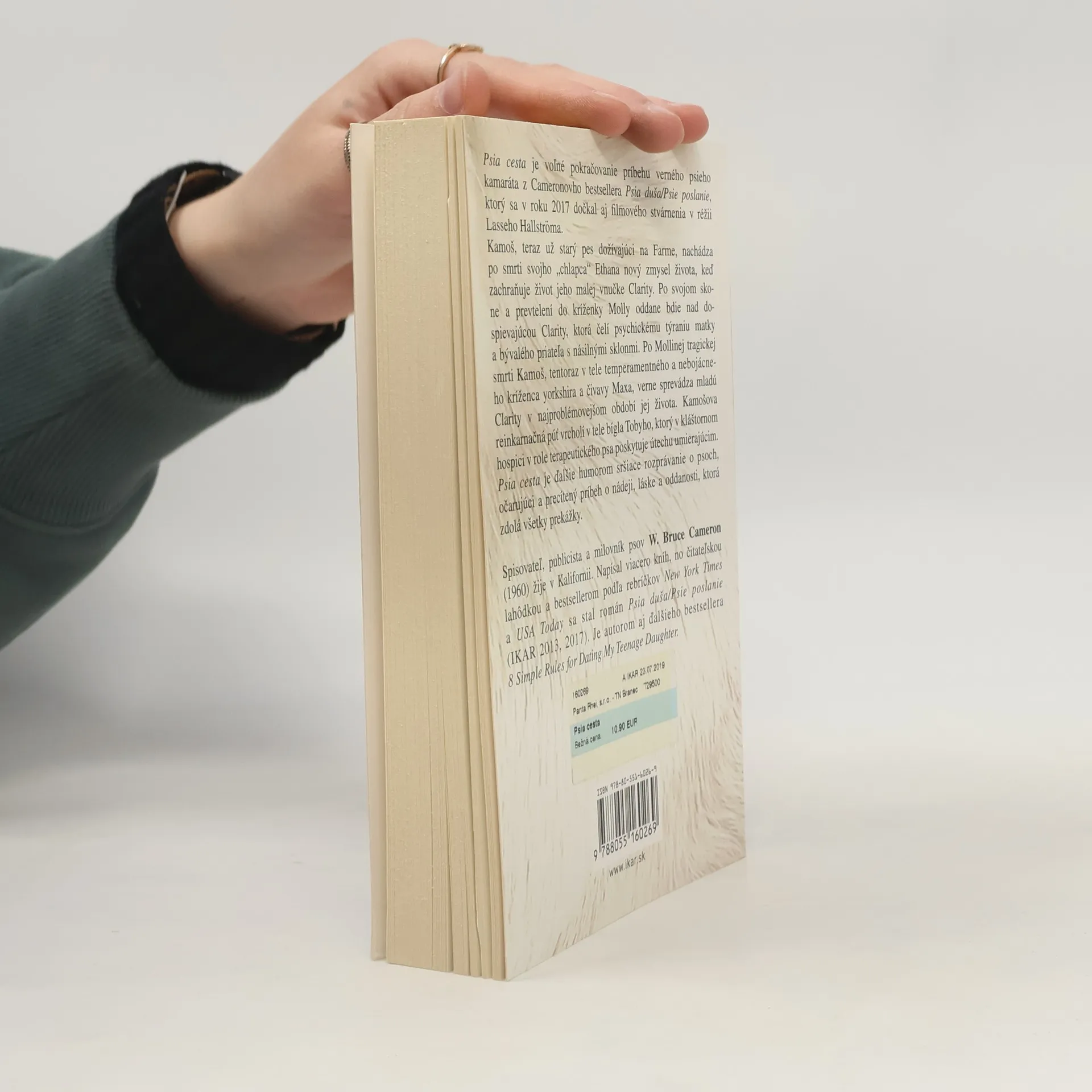 Psia cesta je voľné pokračovanie príbehu verného psieho kamaráta z Cameronovho bestsellera Psia duša/Psie poslanie, ktorý sa v roku 2017 dočkal aj filmového stvárnenia v réžii Lasseho Hallströma. Kamoš, teraz už starý pes dožívajúci na Farme, nachádza po smrti svojho „chlapca“ Ethana nový zmysel života, keď zachraňuje život jeho malej vnučke Clarity. Po svojom skone a prevtelení do kríženky Molly oddane bdie nad dospievajúcou Clarity, ktorá čelí psychickému týraniu matky a bývalého priateľa s násilnými sklonmi. Po Mollinej tragickej smrti Kamoš, tentoraz v tele temperamentného a nebojácneho kríženca yorkshira a čivavy Maxa, verne sprevádza mladú Clarity v najproblémovejšom období jej života. Kamošova reinkarnačná púť vrcholí v tele bígla Tobyho, ktorý v kláštornom hospici v role terapeutického psa poskytuje útechu umierajúcim. Psia cesta je ďalšie humorom sršiace rozprávanie o psoch, očarujúci a precítený príbeh o nádeji, láske a oddanosti, ktorá zdolá všetky prekážky.