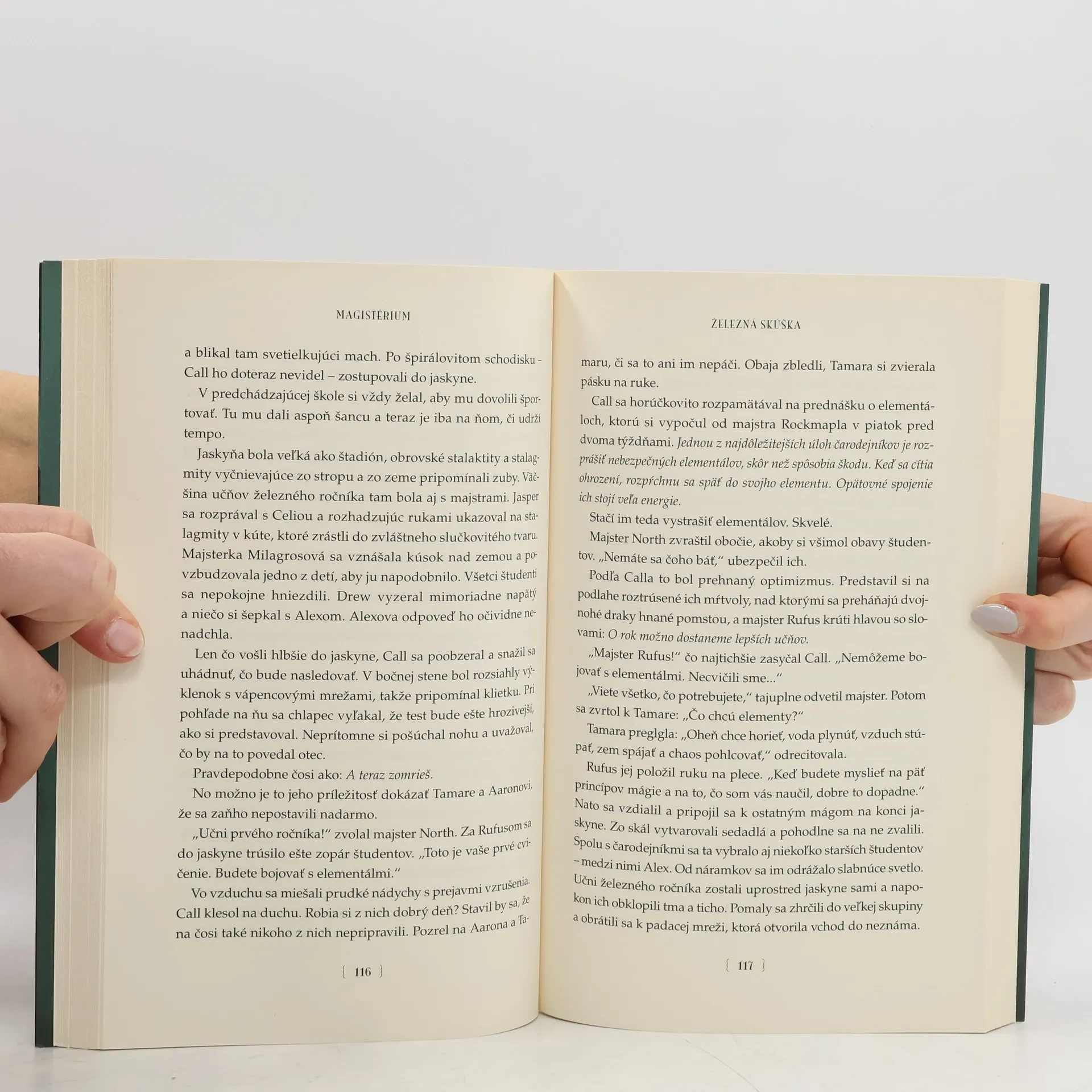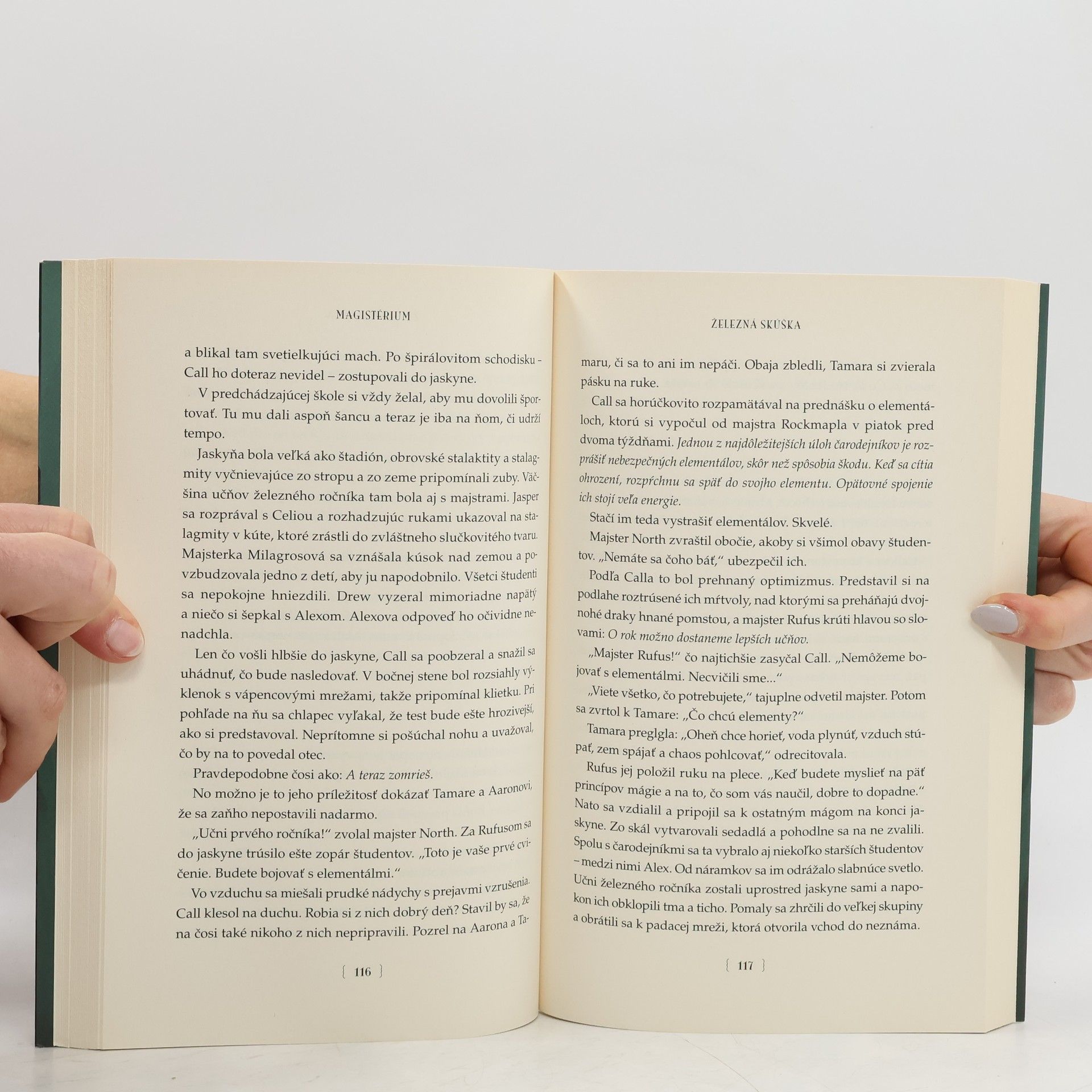 Dvanásťročný Callum Hunt odmalička vie, že ak by sa niekedy zaplietol s mágiou, znamenalo by to preňho smrteľné nebezpečenstvo. Keď dostane pozvánku na vstupnú „železnú“ skúšku do magistéria, tajomnej čarodejníckej školy, rozhodne sa za každú cenu neuspieť. Lenže majster Rufus si ho napriek tomu vyberie za učňa. A tak chlapec prichádza do školy v podzemných jaskyniach, na miesto s magickou, ale aj zlovestnou históriou a neistou budúcnosťou. Žiakov tu učia čarovať a je to celkom zábavné, lenže zároveň ich pripravujú na to, že raz možno budú musieť zachraňovať svet pred Nepriateľom smrti. Call sa prvý raz v živote necíti ako čudák a dokonca verí, že si v magistériu nájde priateľov. Lenže železná skúška je iba začiatok a to najťažšie ho ešte len čaká. Železná skúška je prvá kniha z celosvetovo úspešnej série Magistérium.