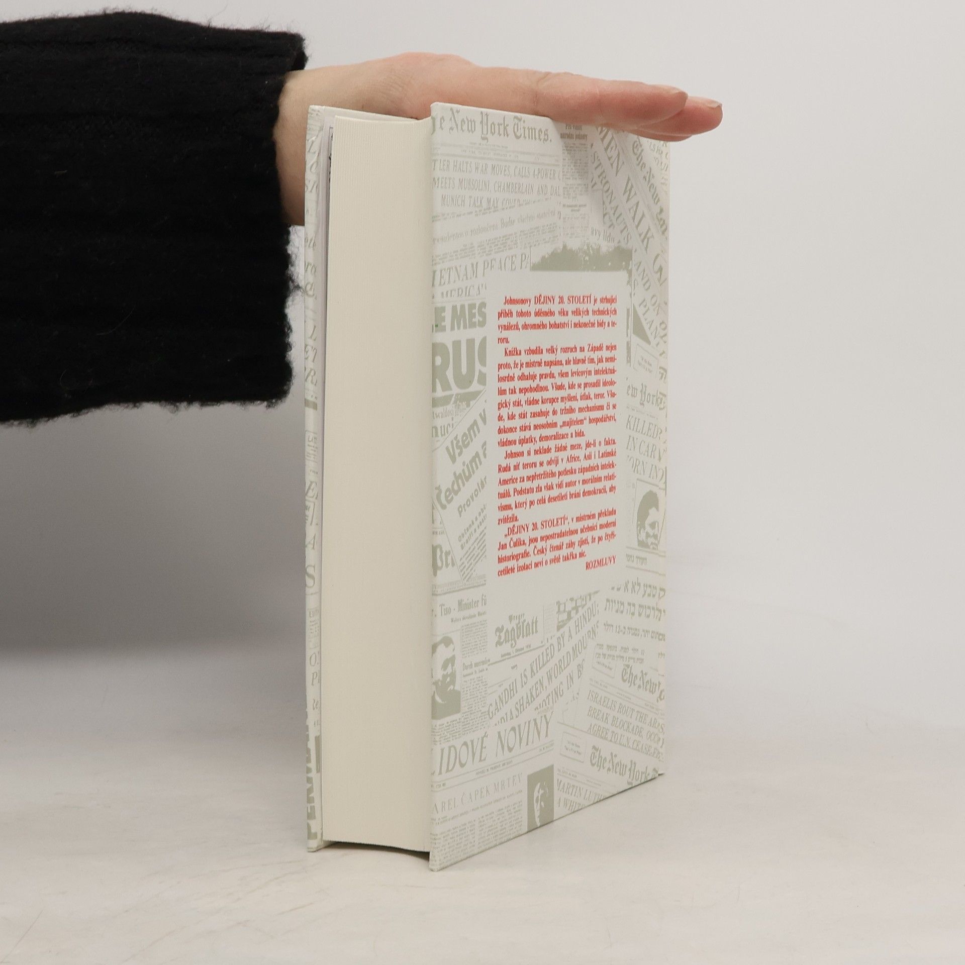 Johnsonovo dílo Dějiny 20. století je strhující příběh tohoto úděsného věku velkých technických vynálezů, ohromného bohatství i nekonečné bídy a teroru. Knížka vzbudila velky rozruch na Západě nejen proto, že je mistrně napsána, ale hlavně tím, jak nemilosrdně odhaluje pravdu, všem levicovym intelektuálům tak nepohodlnou. Všude, kde se prosadil ideologický stát, vládne korupce myšlení, útlak, teror. Všude, kde stát zasahuje do tržního mechanismu či se dokonce stává neosobním „majitelem" hospodářství, vládnou úplatky, demoralizace a bída. Johnson si neklade žádné meze, jde-li o fakta. Rudá nit teroru se odvíjí v Africe, Asii i Latinské Americe za nepřetržitého potlesku západních intelektuálů. Podstatu zla však vidí autor v morálním relativismu, který po celá desetiletí brání demokracii, aby zvítězila. „DĚJINY 20. STOLETÍ" v mistrném překladu Jana Čulíka jsou nepostradatelnou učebnicí moderní historiografie. Čtenář záhy zjistí, že po čtyřicetileté izolaci neví o novodobých dějinách světa takřka nic.
