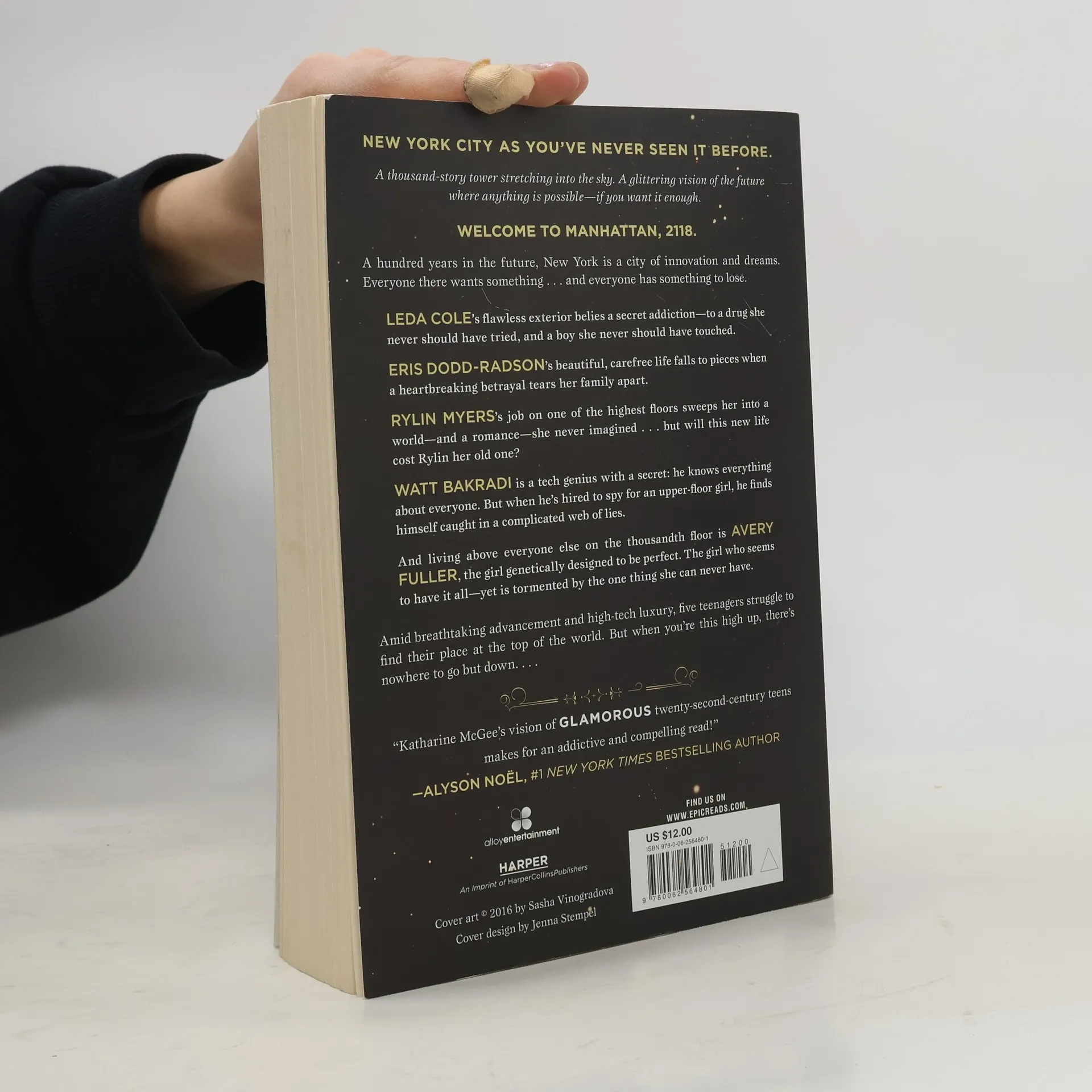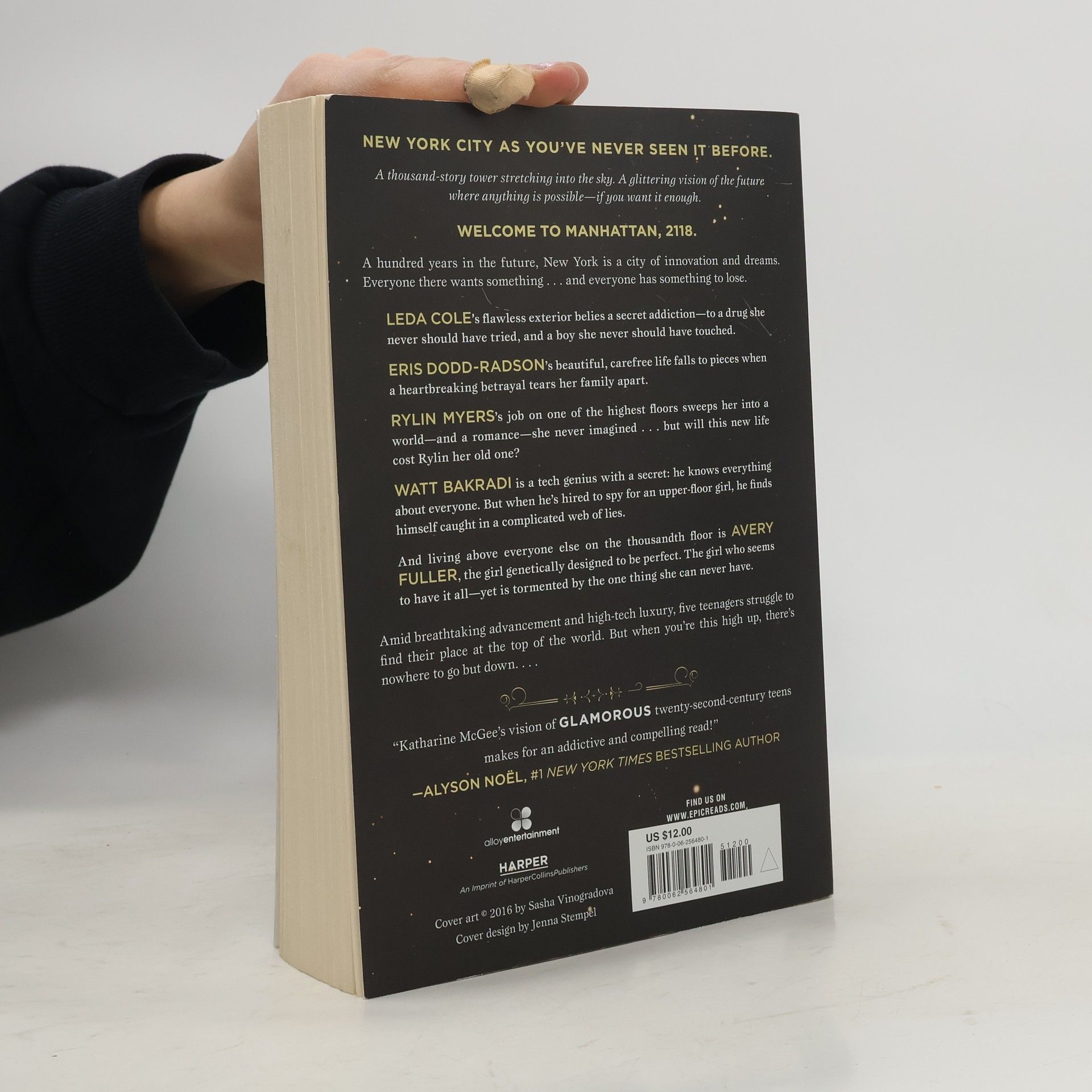 New York City as you’ve never seen it before. A thousand-story tower stretching into the sky. A glittering vision of the future, where anything is possible—if you want it enough.Welcome to Manhattan, 2118.A hundred years in the future, New York is a city of innovation and dreams. But people never change: everyone here wants something…and everyone has something to lose.Leda Cole’s flawless exterior belies a secret addiction—to a drug she never should have tried and a boy she never should have touched.Eris Dodd-Radson’s beautiful, carefree life falls to pieces when a heartbreaking betrayal tears her family apart.Rylin Myers’s job on one of the highest floors sweeps her into a world—and a romance—she never imagined…but will her new life cost Rylin her old one?Watt Bakradi is a tech genius with a secret: he knows everything about everyone. But when he’s hired to spy by an upper-floor girl, he finds himself caught up in a complicated web of lies.And living above everyone else on the thousandth floor is Avery Fuller, the girl genetically designed to be perfect. The girl who seems to have it all—yet is tormented by the one thing she can never have.Debut author Katharine McGee has created a breathtakingly original series filled with high-tech luxury and futuristic glamour, where the impossible feels just within reach. But in this world, the higher you go, the farther there is to fall….